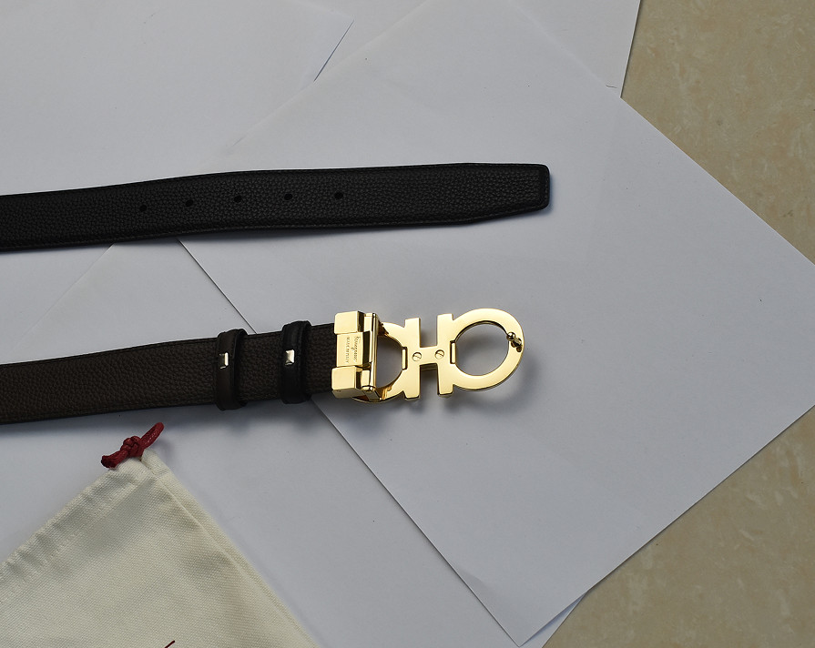 как выглядит Men Ferragamo Reversible Black /Brown belt length 120 cm Gold Gancini buckle фото