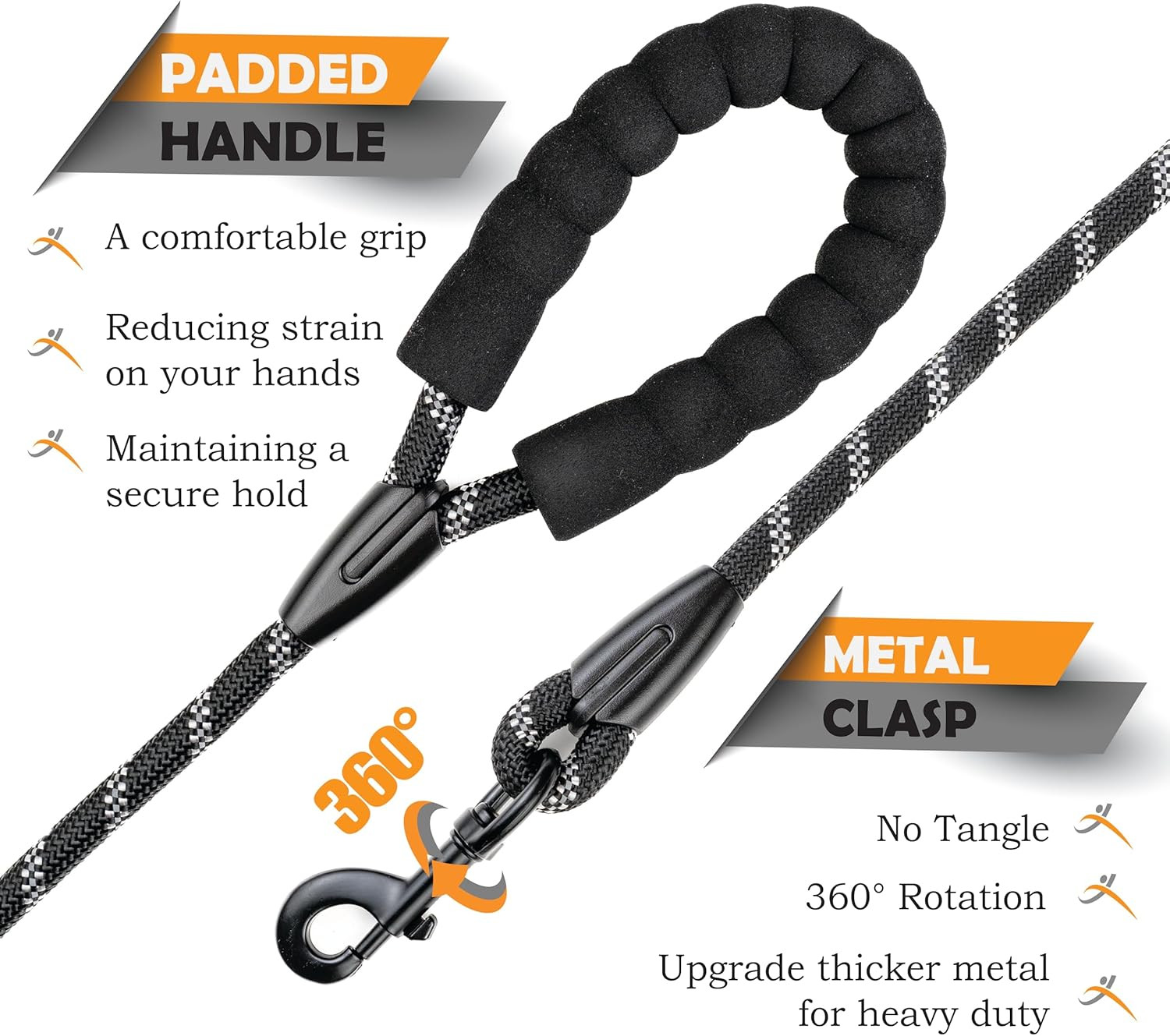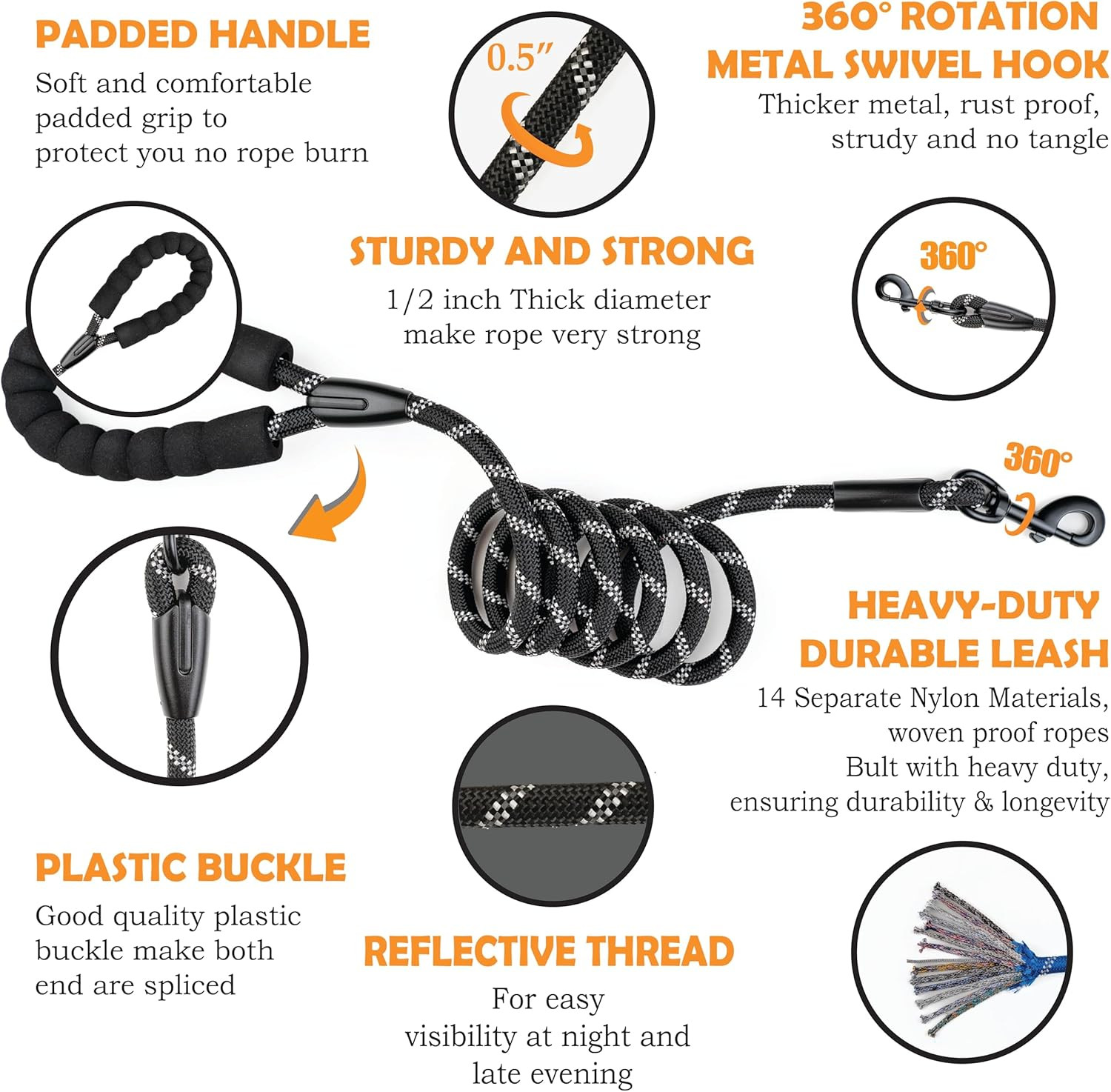 2 Pack 6 Ft Heavy Duty Dog Leash with Poop Bag and Dispenser and Silicone Toothb