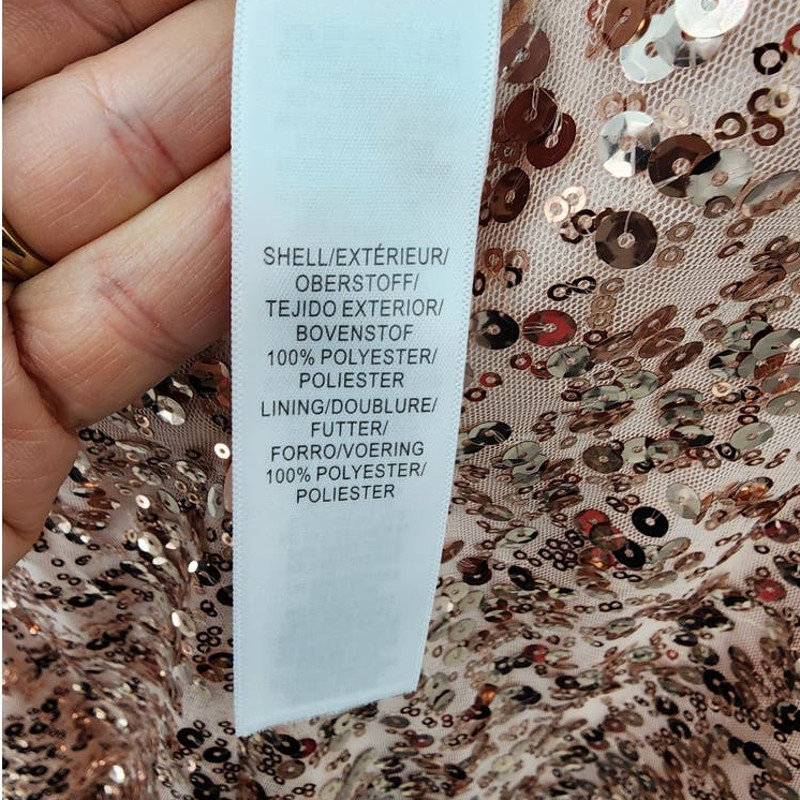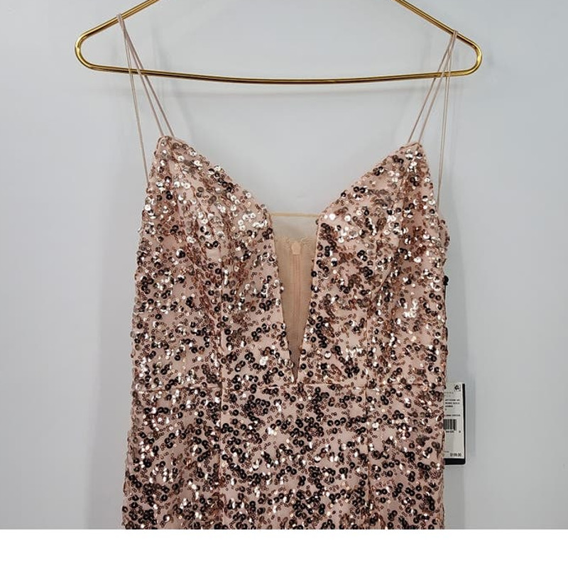 как выглядит NWT Adrianna Papell Womens Rose Gold Sequin Column Evening Gown Size 2 фото