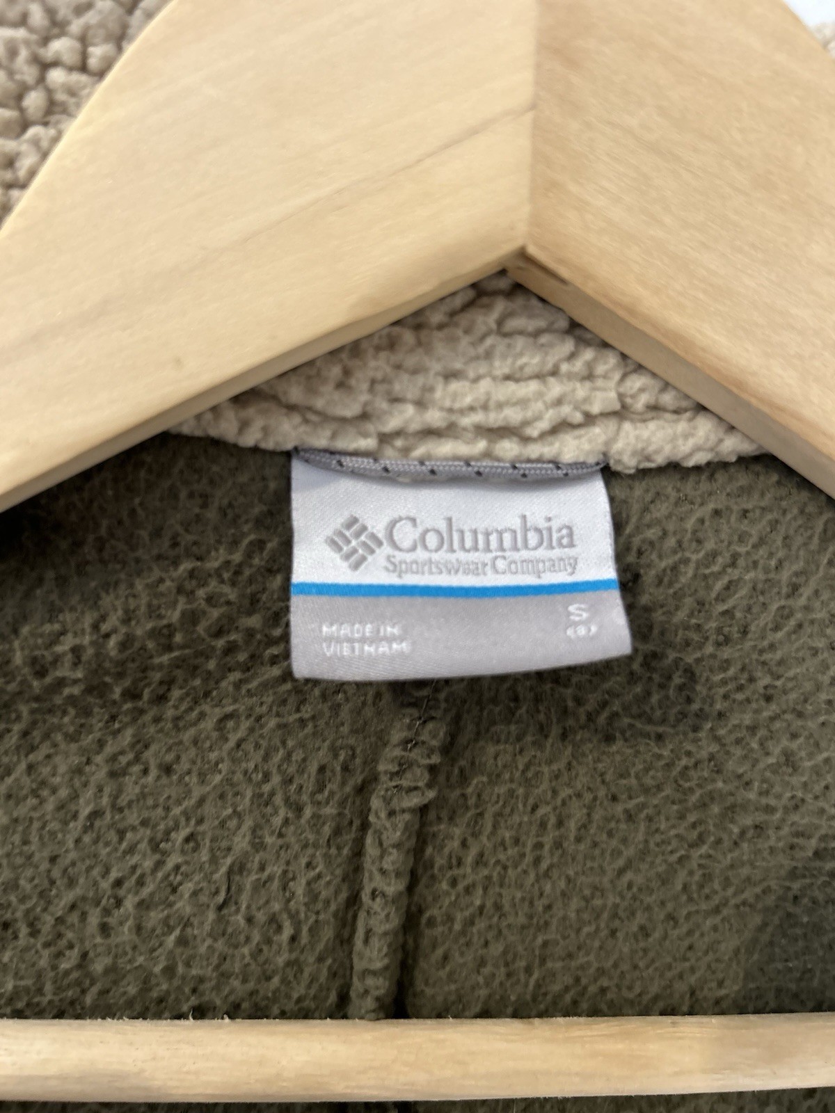 Columbia Kids Fleece Vest Full Zip Pockets Green - Beige And Size S 8-10