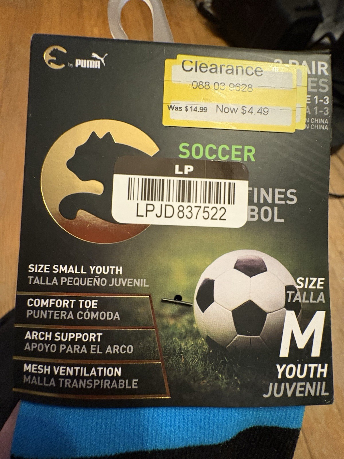 2 Packs NEW Puma Procat Soccer Socks Youth Sz M 2 Pr Pk Black/Electric Blue 4 Pr