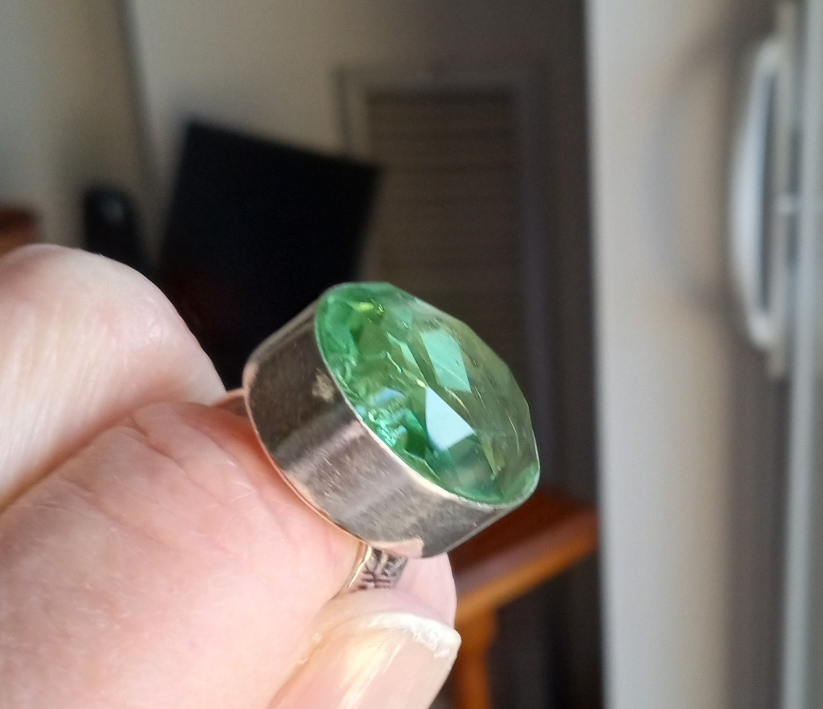 как выглядит Silver 925 Peridot Ring Sz 6 фото