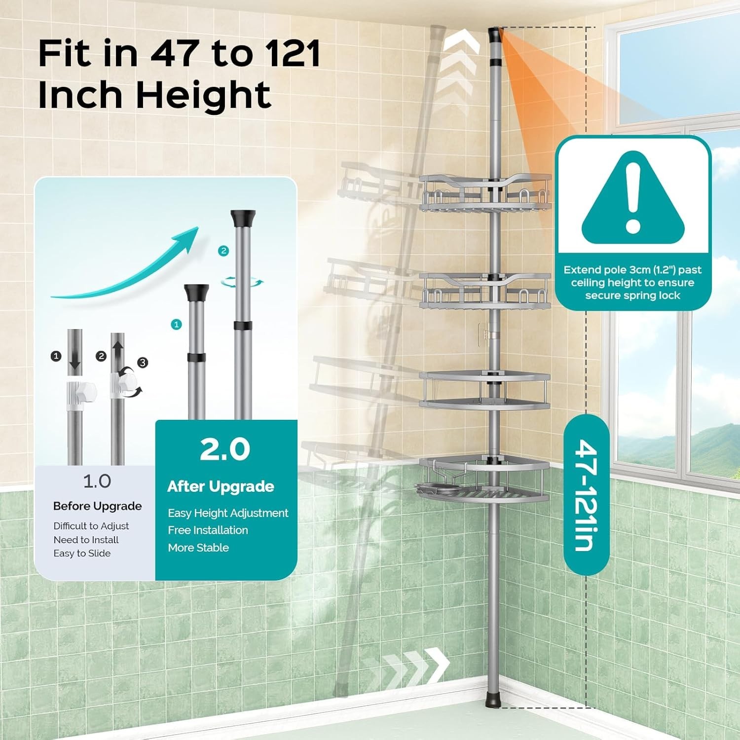 Corner Rustproof 4-Tier Bathroom Shelves, Adjustable Shower Caddy with Soap Rack