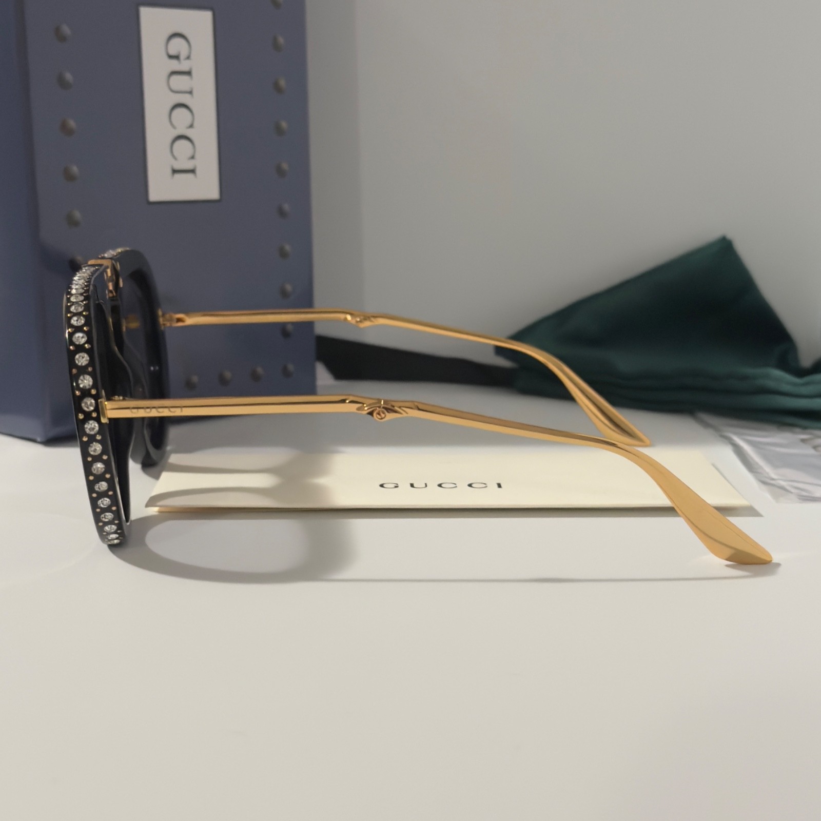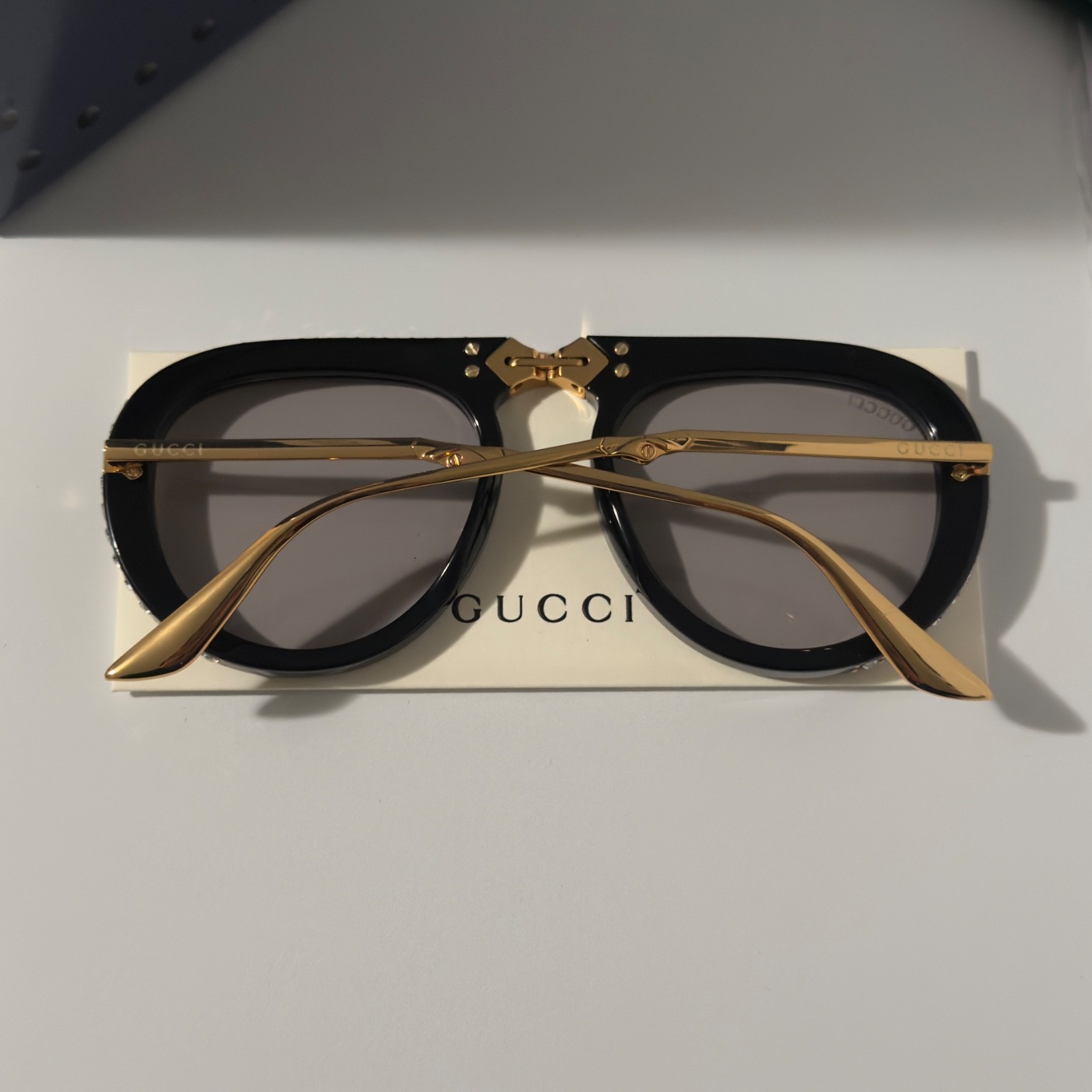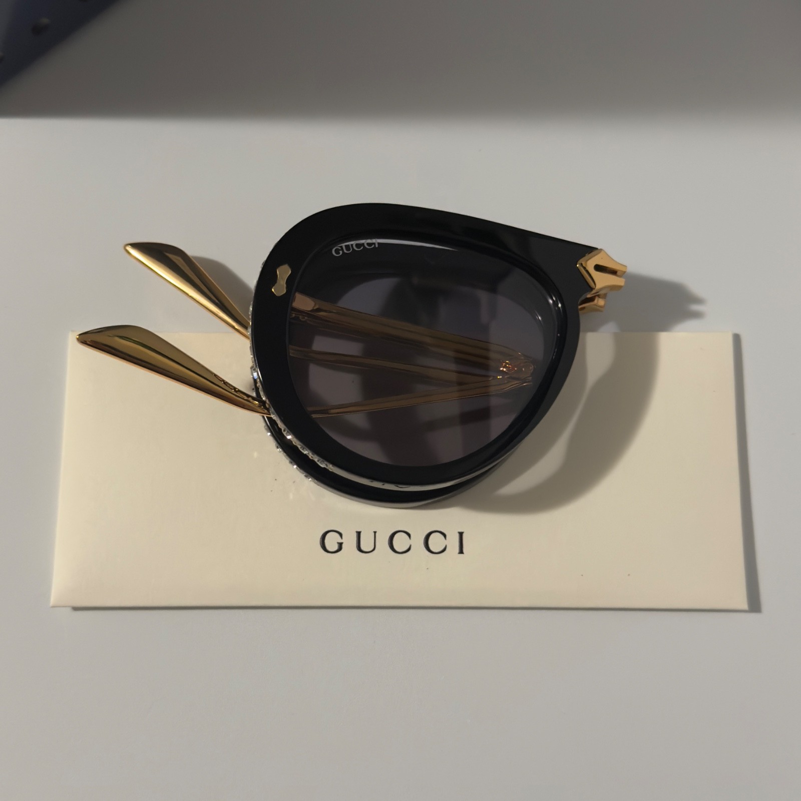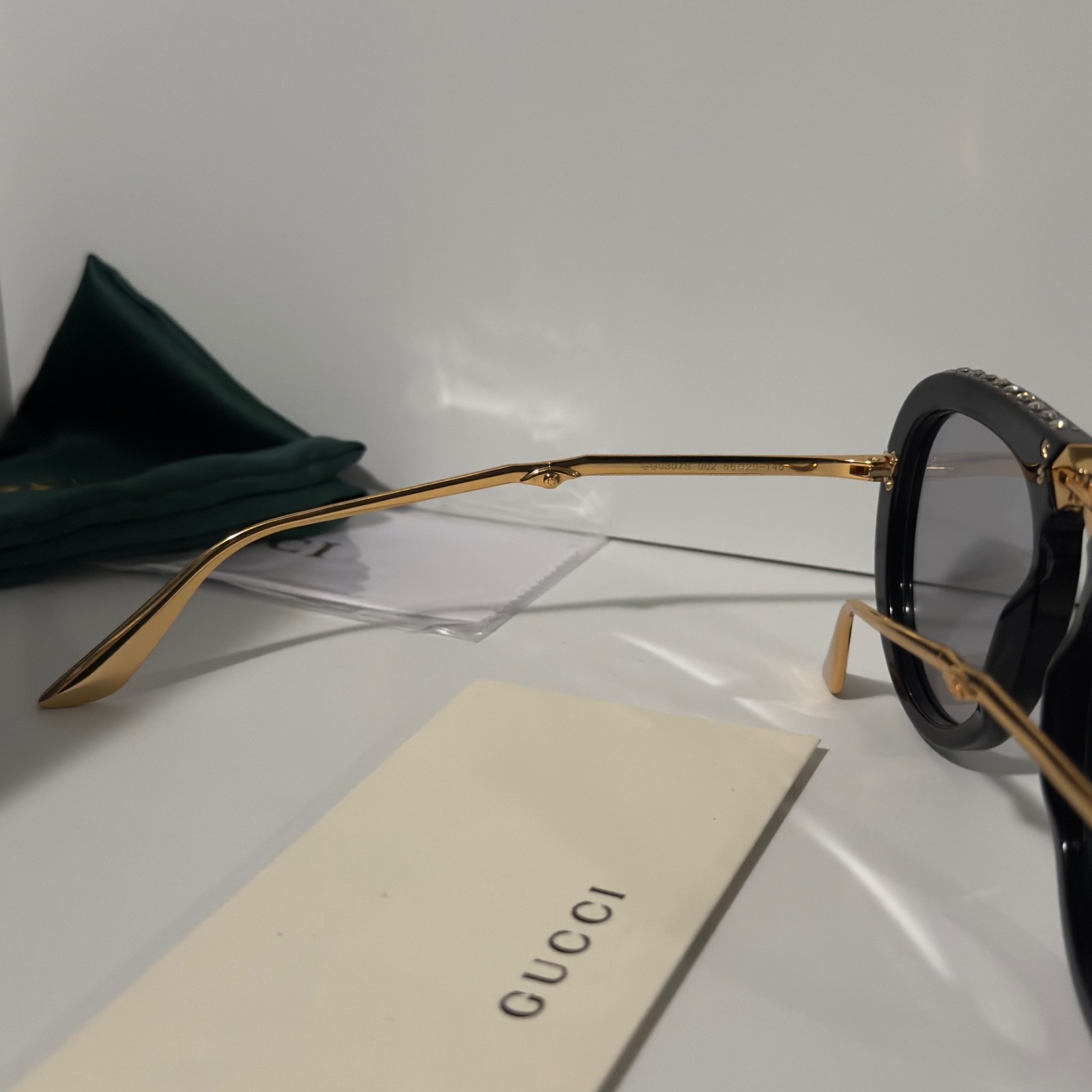 как выглядит Gucci GG0307S Foldable Sunglasses Black Crystal Studded Gray Lenses Ships Today фото