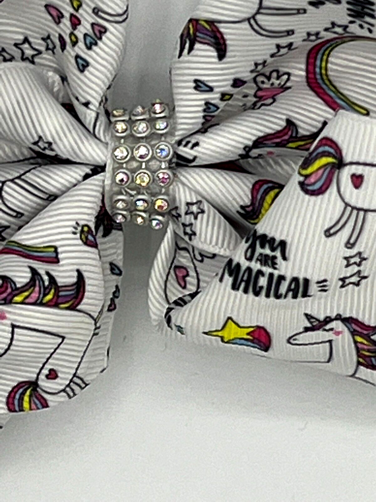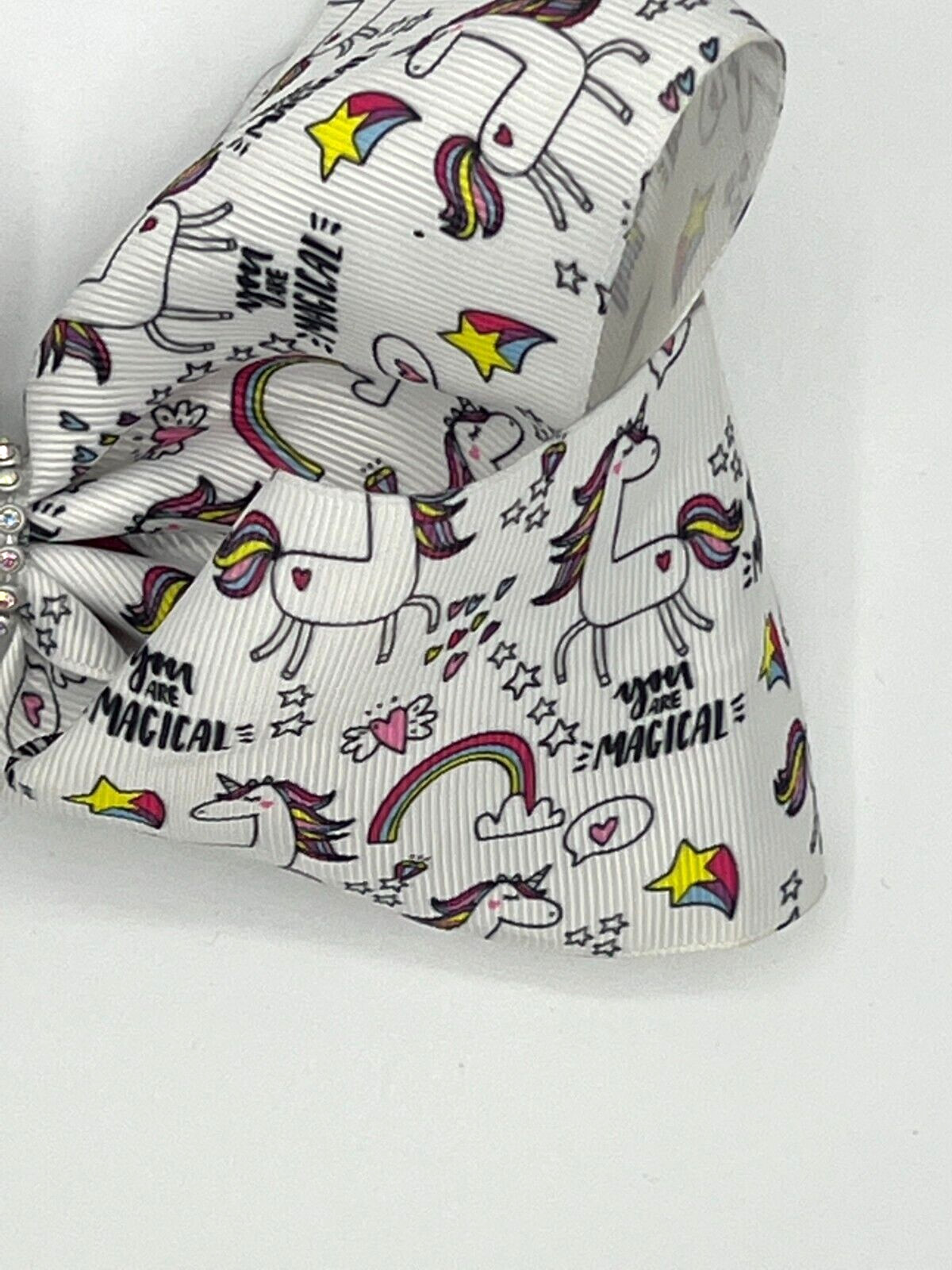 JoJo Siwa Large Hair Bow Clip White with Magical Unicorns Rhinestone Coupler