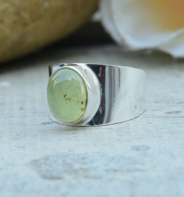 как выглядит Natural Green Prehnite Oval Gemstone 925 Sterling Silver Band Ring фото