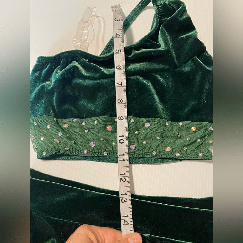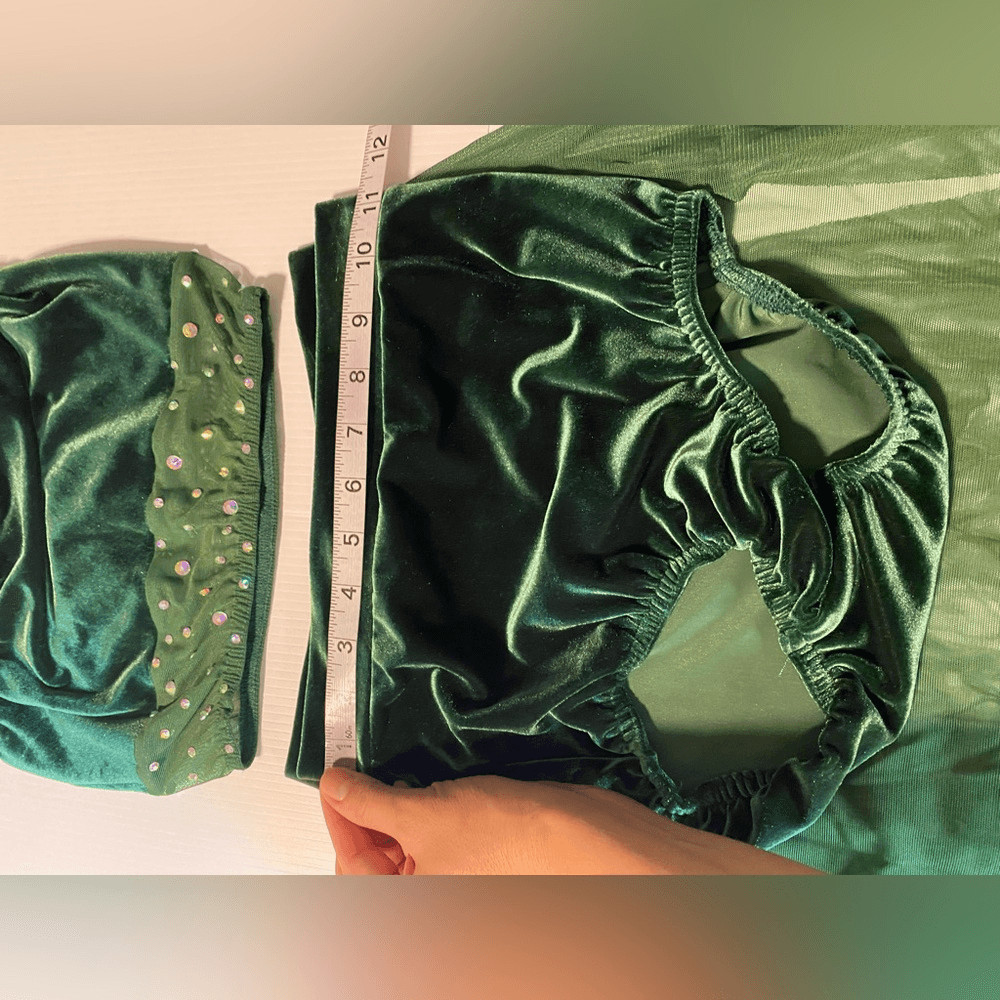 как выглядит Kelle dance solo costume 3 piece green velvet THE ALCHEMY skirt 7111 SA adult фото