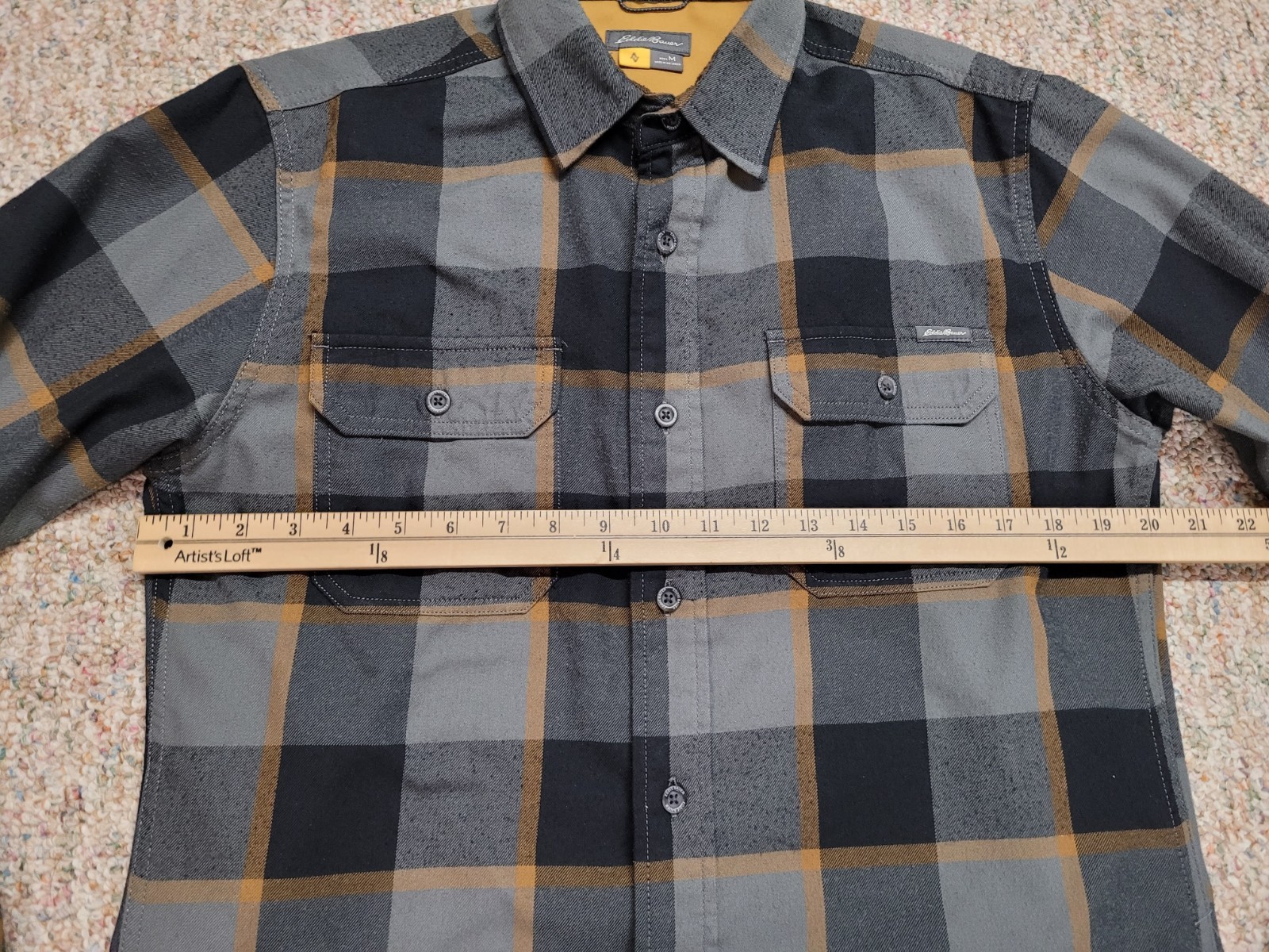 как выглядит Eddie Bauer Travex Shirt Mens Medium Grey Plaid Flannel Button Up Outdoors Camp фото