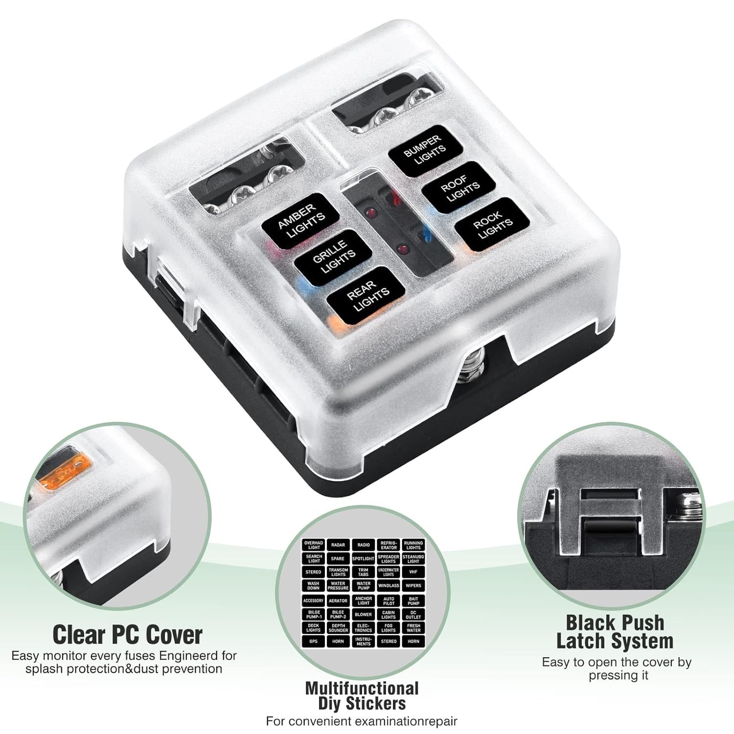 6-Way Car Marine Waterproof Fuse Box Block Holder with LED Indicator For 12V/24V