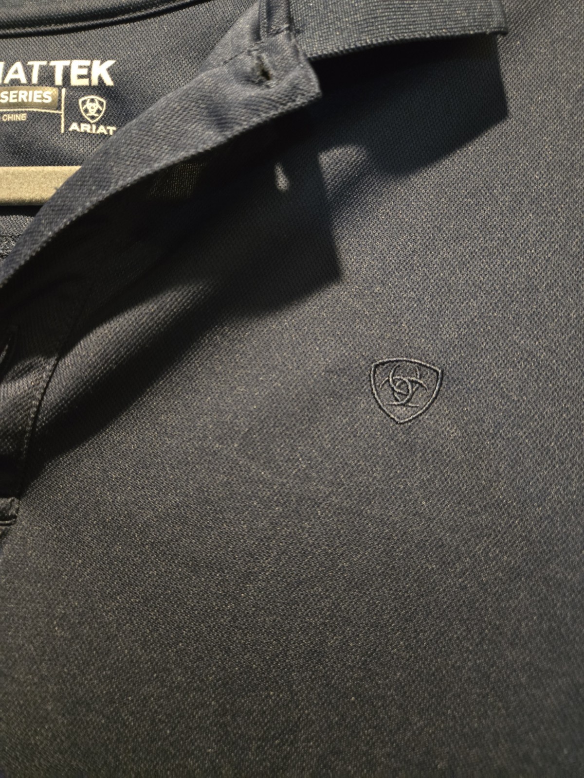 как выглядит Ariat TEK Polo Shirt Mens Size Large Tall Blue Performance Heat Series Golf фото
