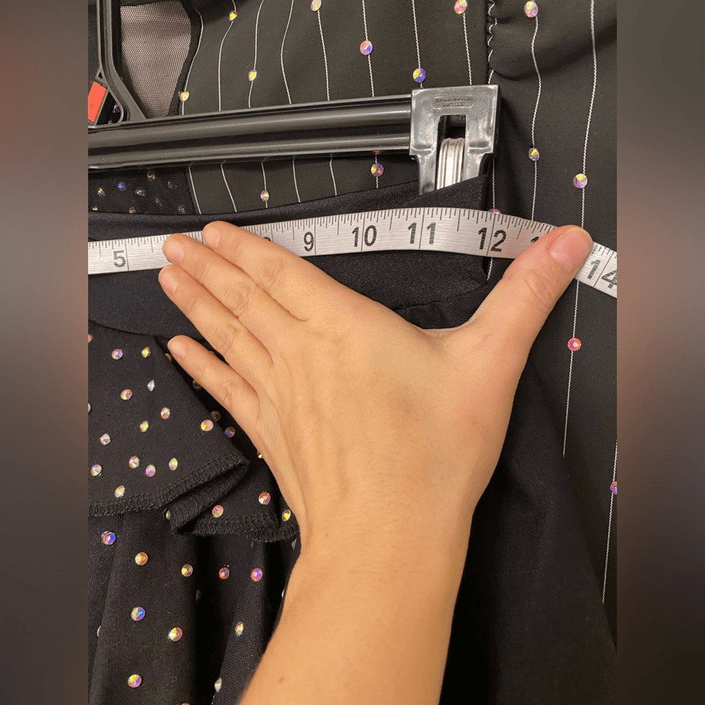 как выглядит Kelle solo dance costume 3 piece black pin stripe leotard skirt 5333 stoned LC фото