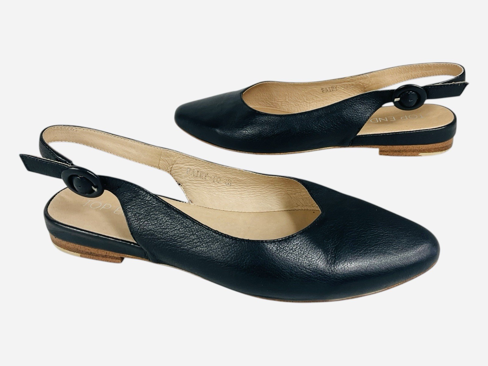 Top End Fairy Slingback Flats Size 37 AU6 Black Comfort Flats Leather