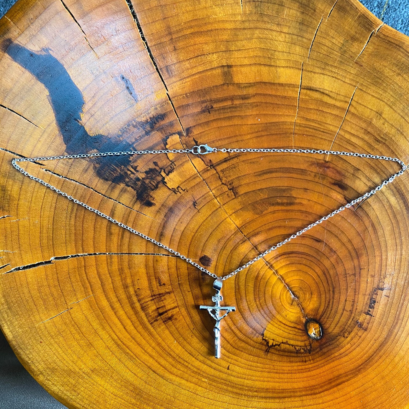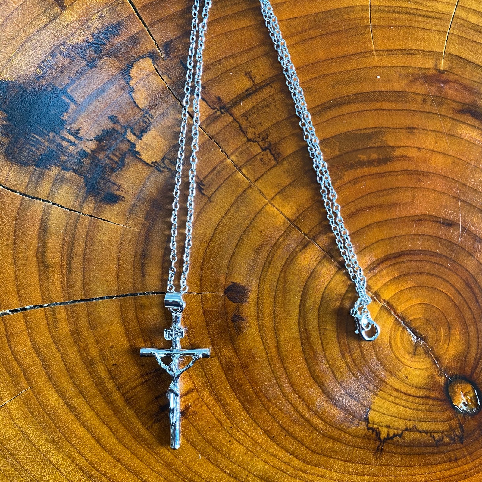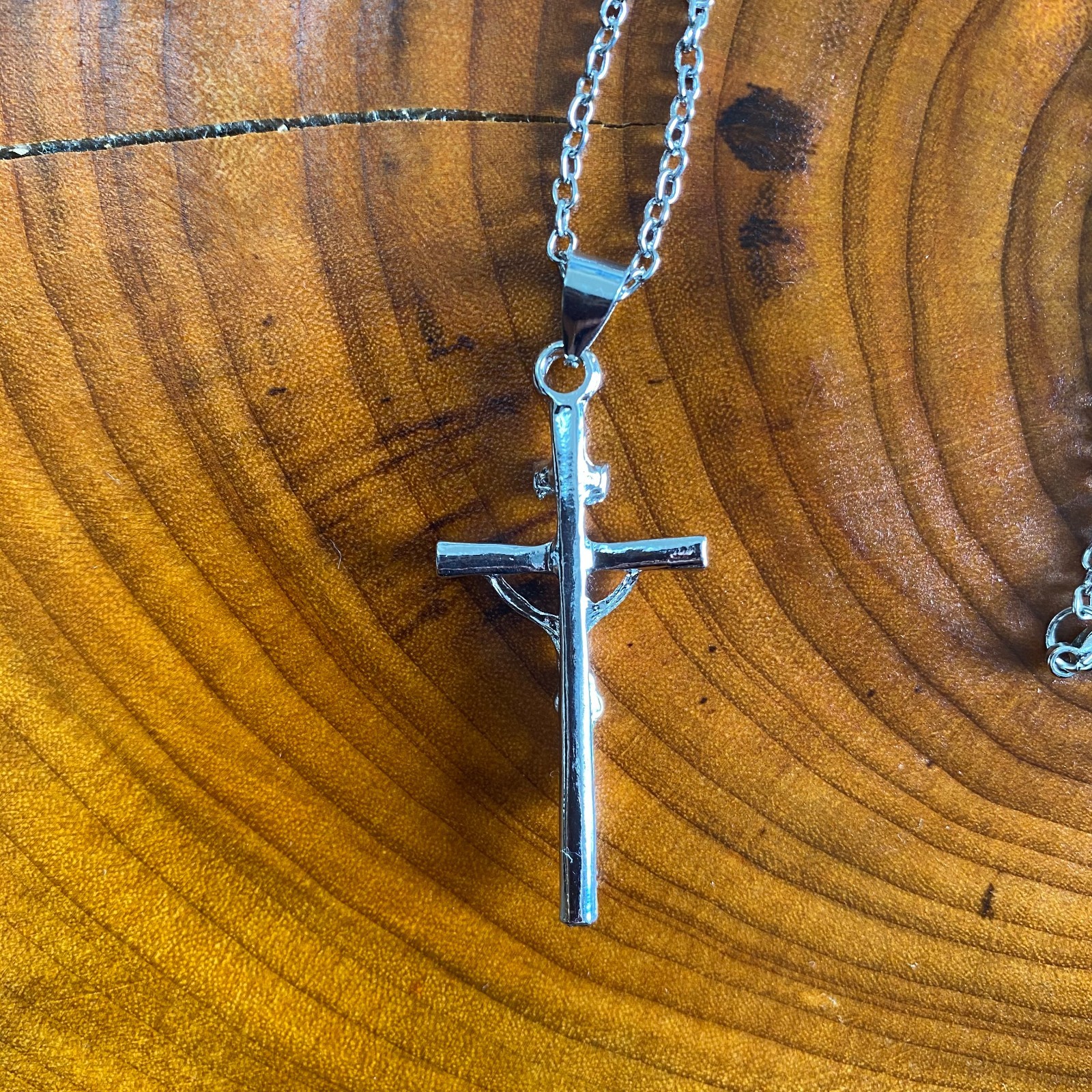 Real Solid Plated with 925 Sterling Silver Men's Jesus Cross pendant necklace