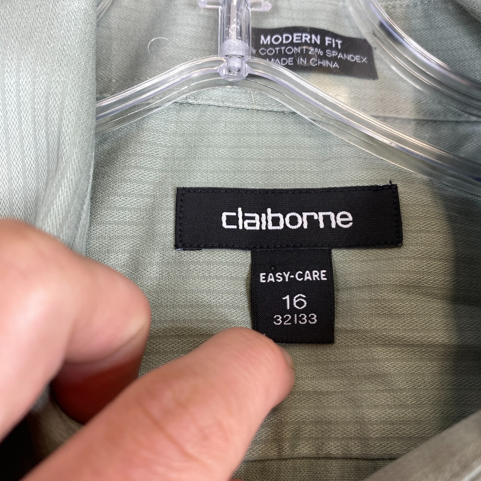 как выглядит Claiborne Easy Care Modern Fit Dress Shirt Mens 16 Long Sleeve Green Casual фото