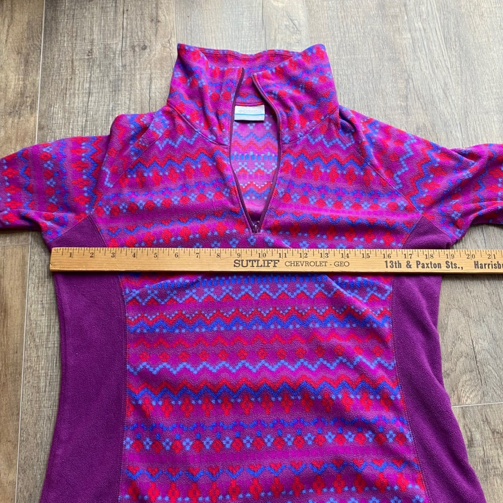 как выглядит Columbia Women Fleece Set 1/4 Zip Pullover Pants Purple Fair Isle Aztec Size M фото