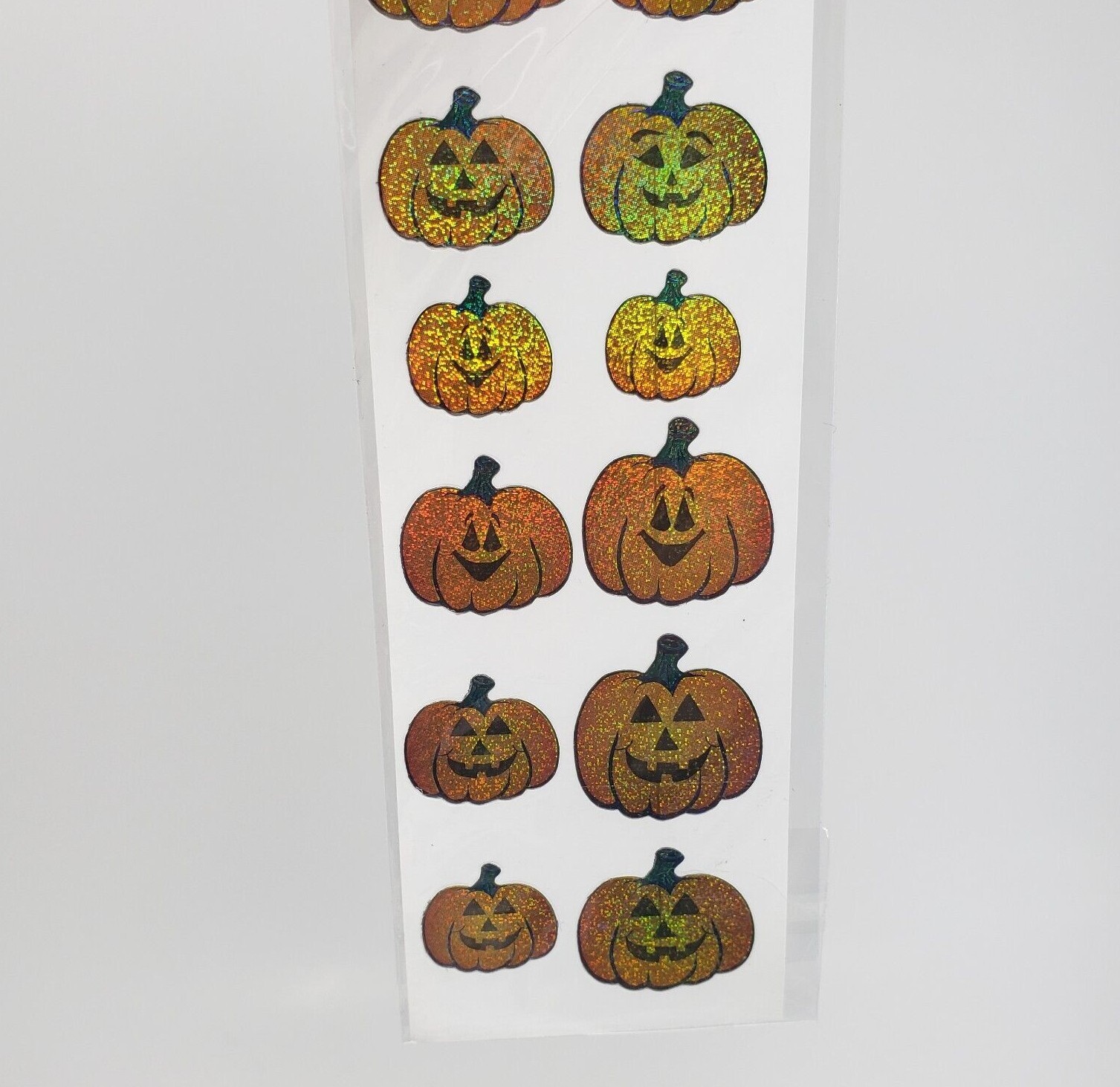 как выглядит VINTAGE IRIDESCENT GLITTER PUMPKINS HALLOWEEN COLORFUL STICKERS 1 SHEET SEALED фото