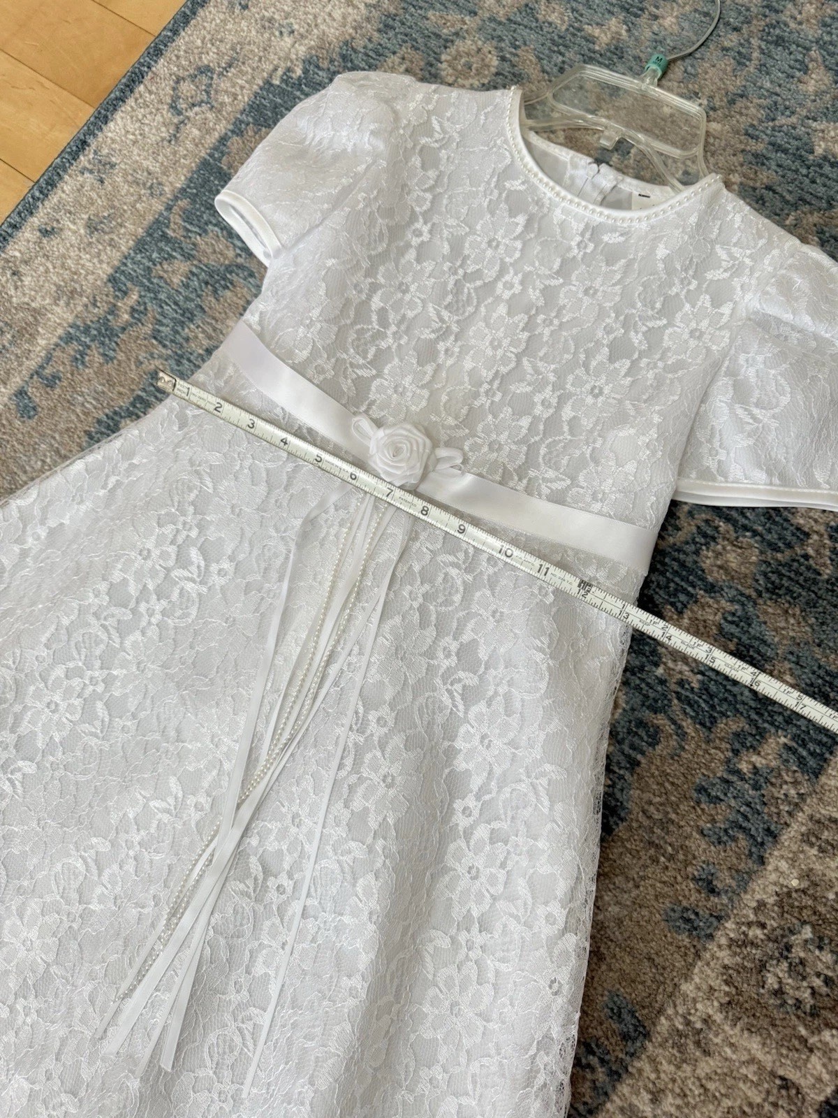 как выглядит Beautiful Lace Flower Girl, First Communion Dress With Pearl Neckline Size 8 фото