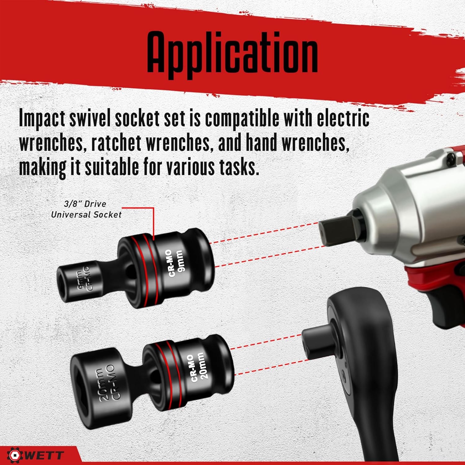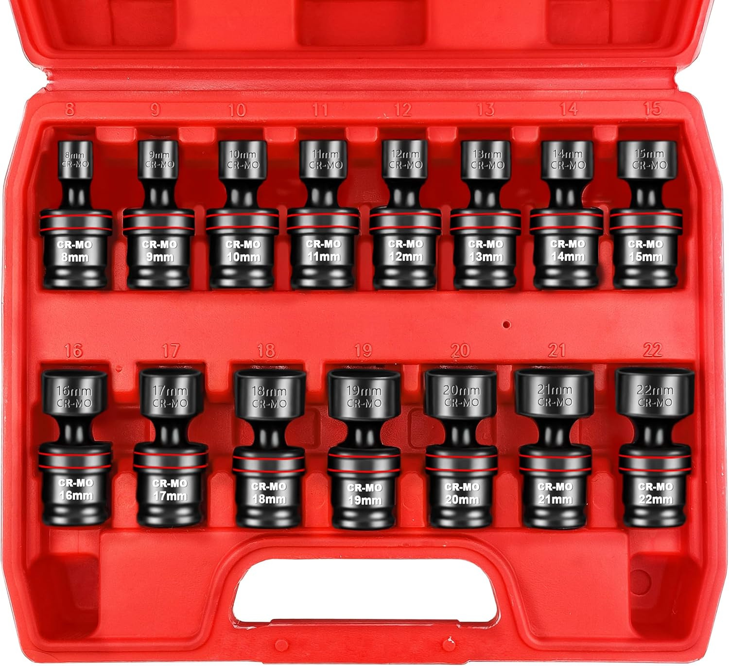 15-Piece 3/8 Drive Impact Swivel Socket Set, Metric 8-22mm, CR-MO