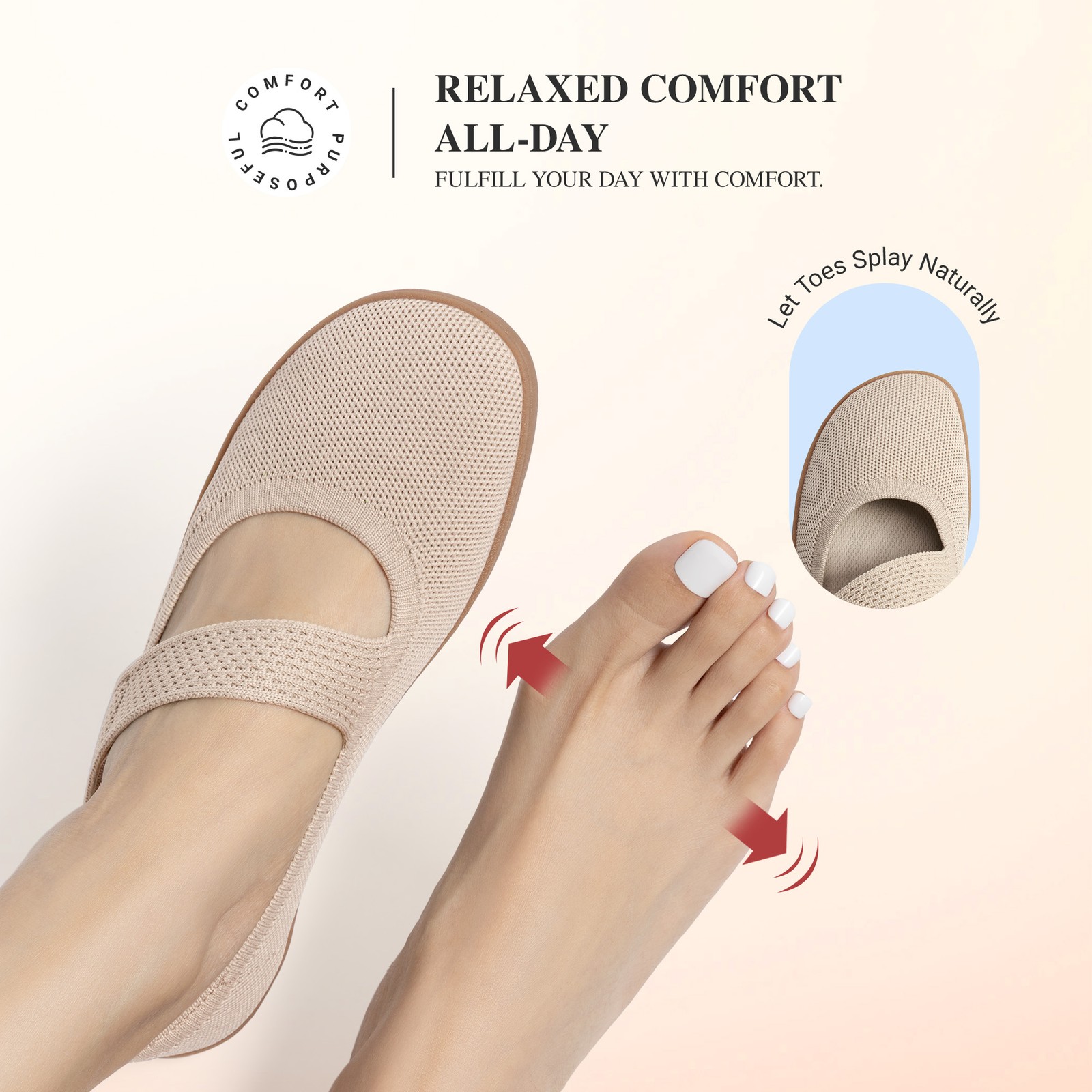 Women s Wide Toe Knit Flats Barefoot Comfort Breathable Mary Jane Shoes