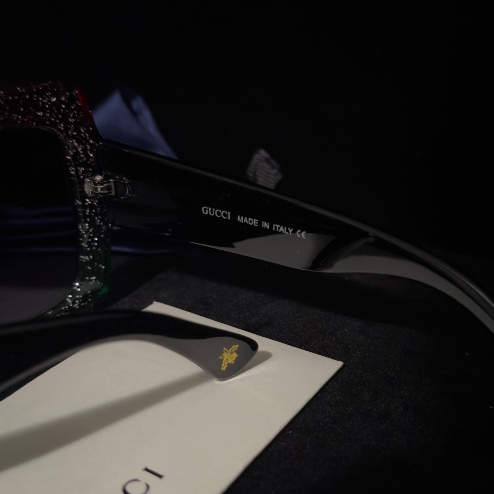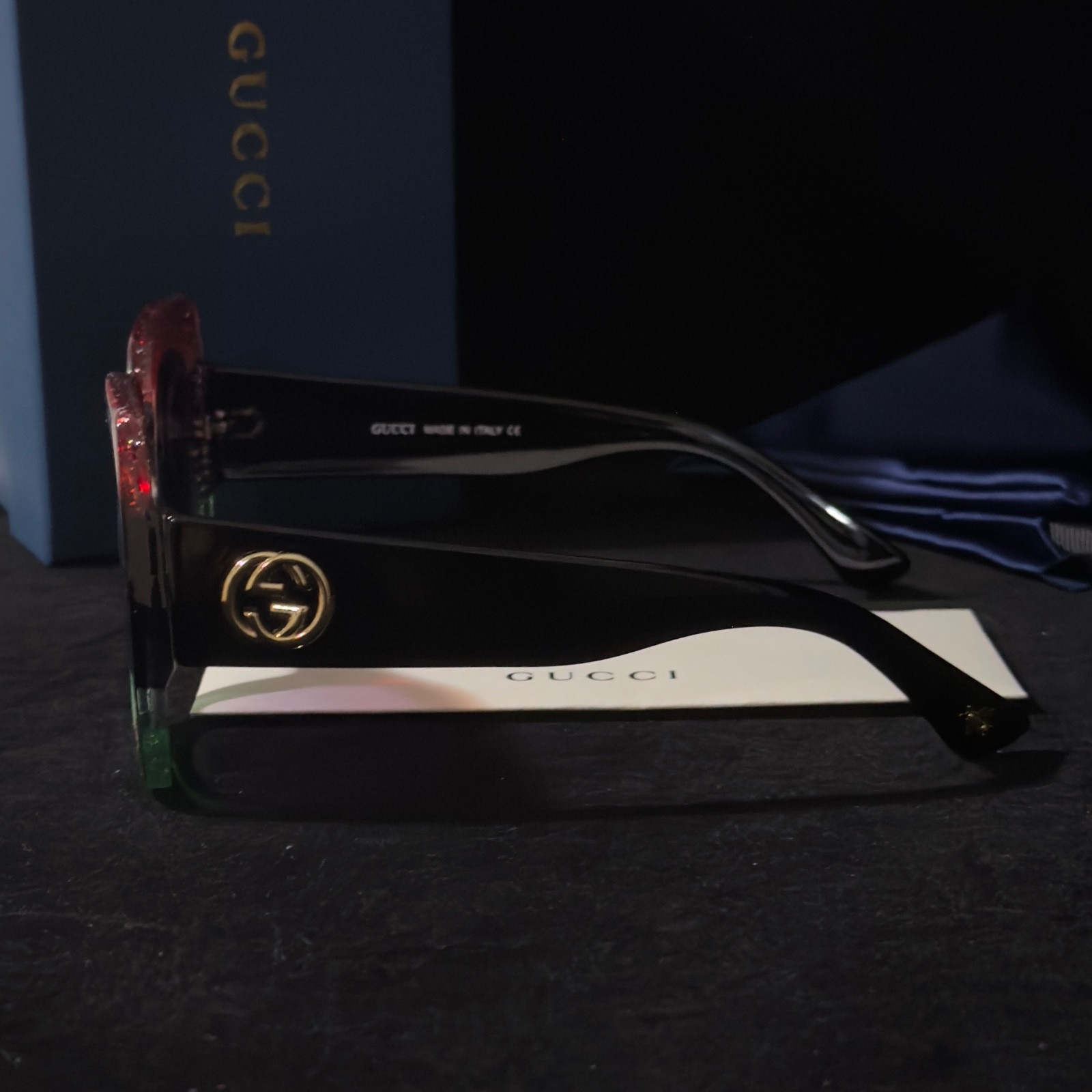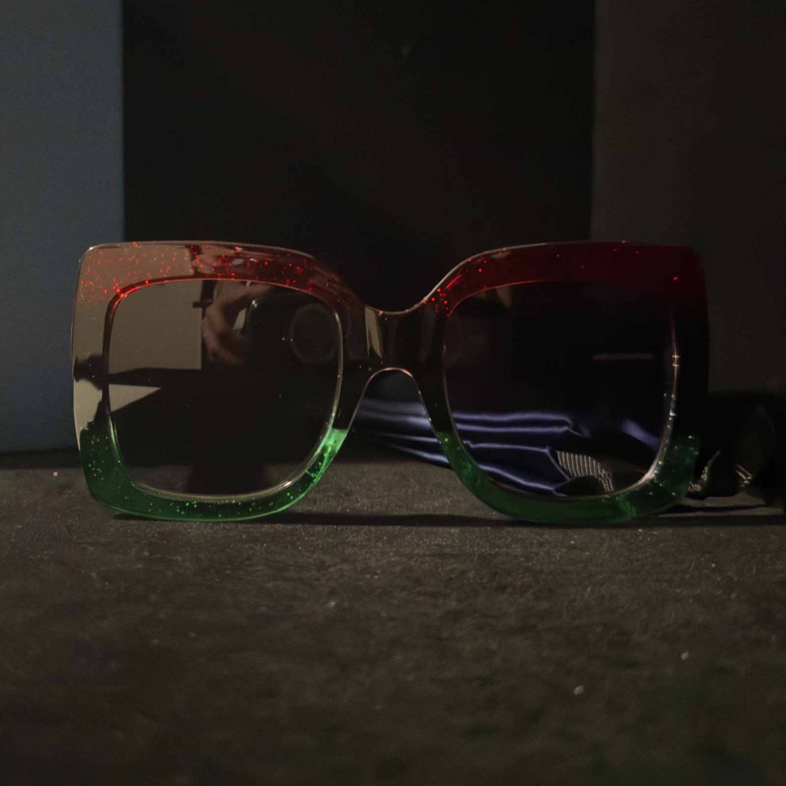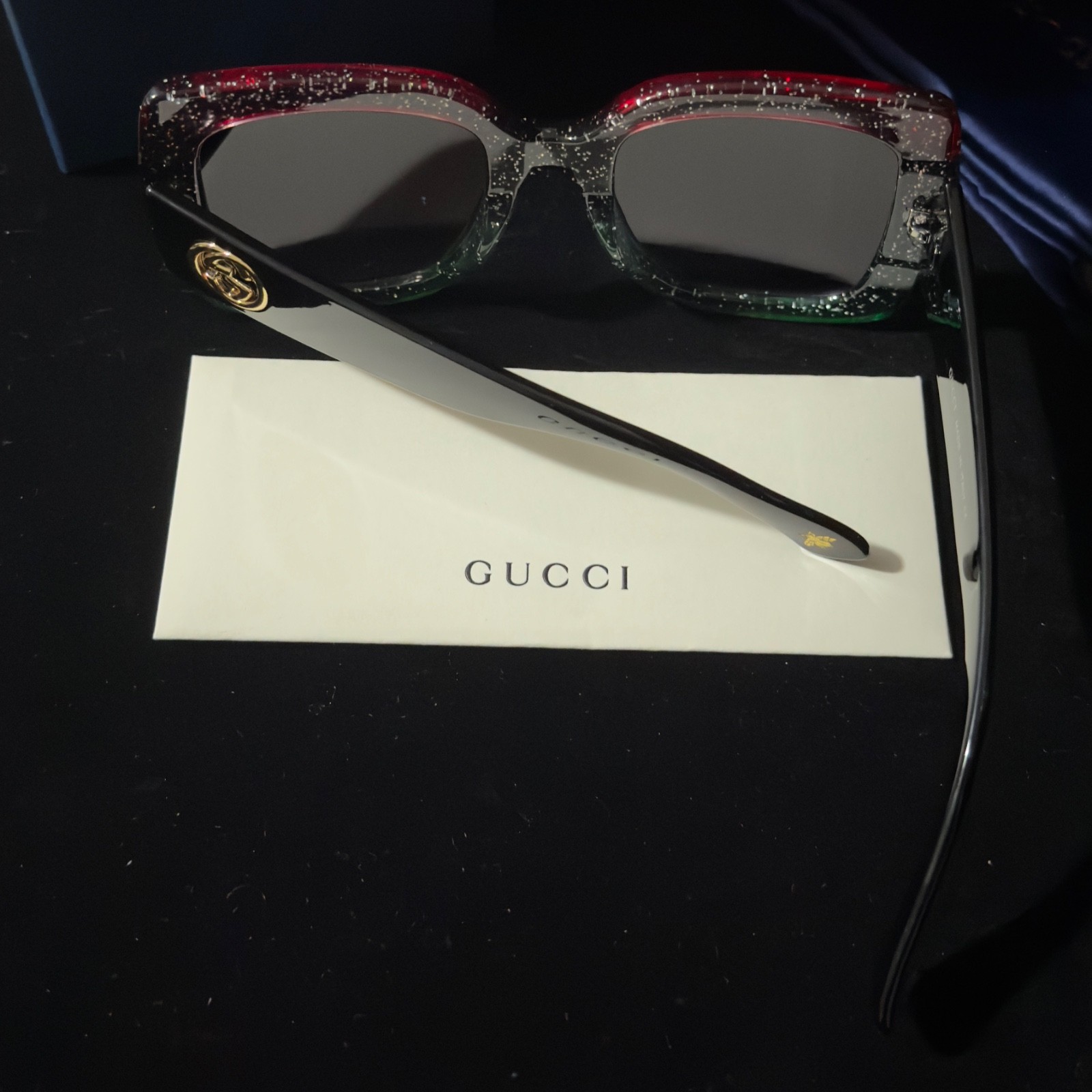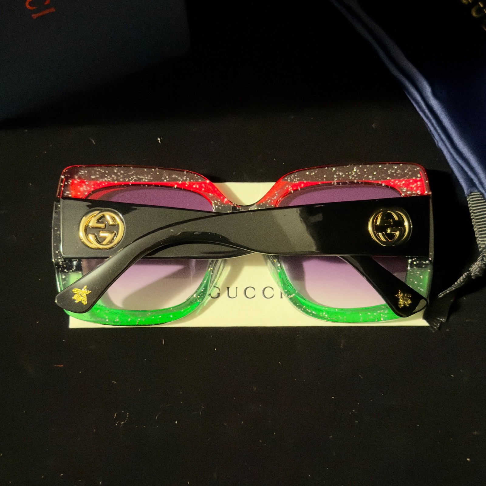 Gucci GG0083S Oversized Square Red Green Glitter Sunglasses Violet Lens