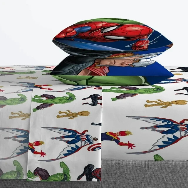 Marvel Avengers Full Sheet Set 4pc Microfiber Kids Bedding Spiderman Hulk Thor