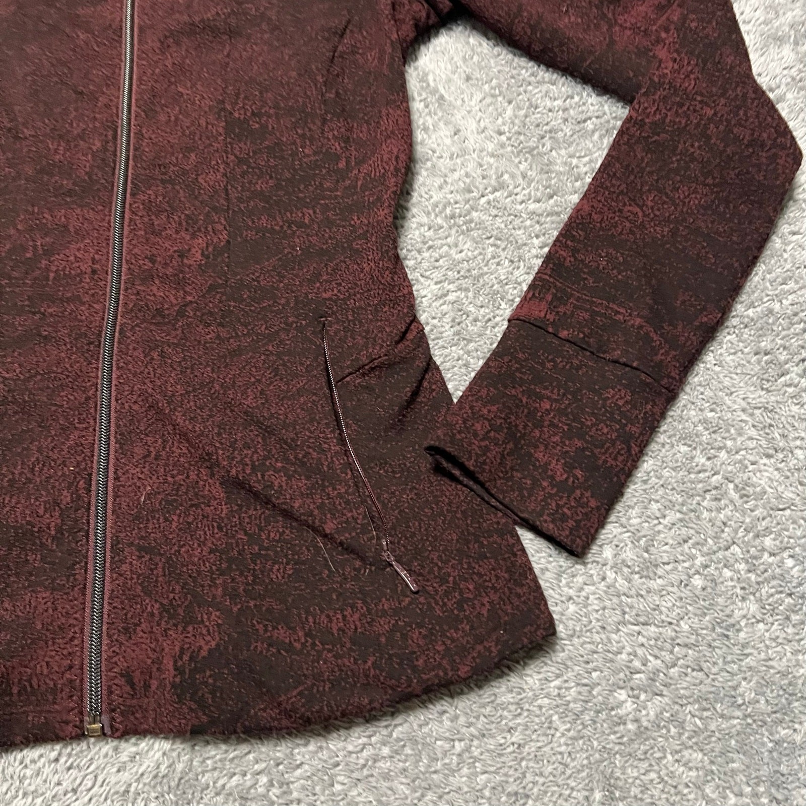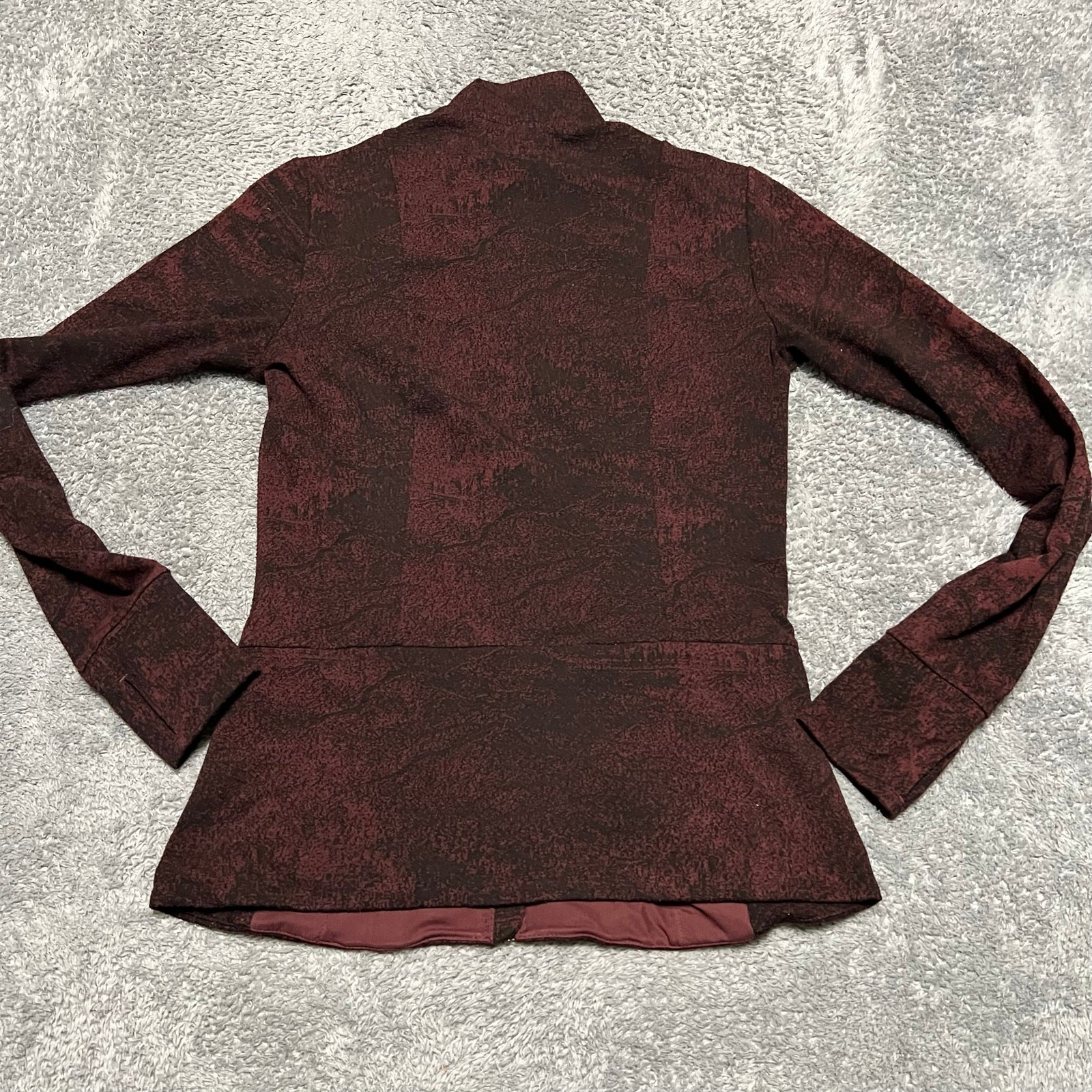 как выглядит Athleta Jacket Womens Small Shanti Jacquard Full Zip Antique Burgundy Textured фото