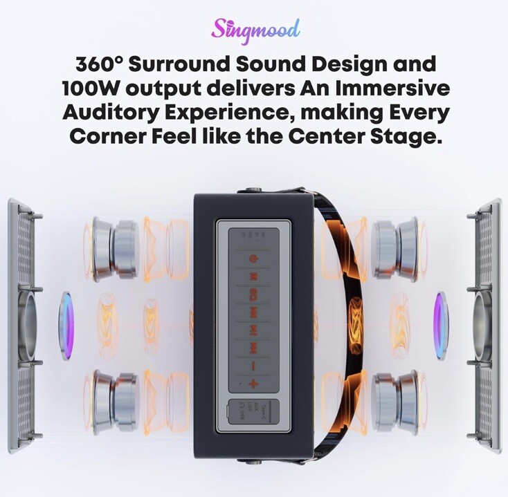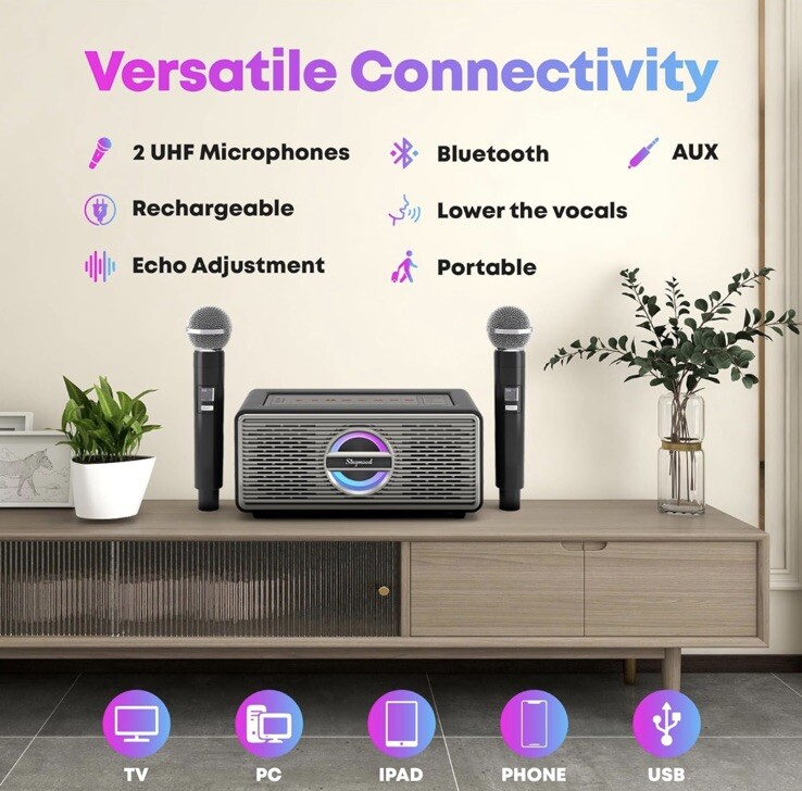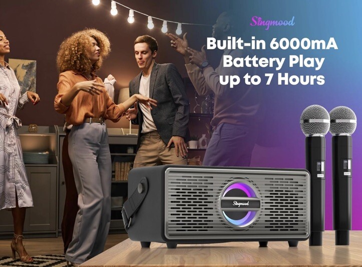 SINGMOOD Model S-330 Portable Bluetooth Karaoke Machine 2 Wireless Microphones
