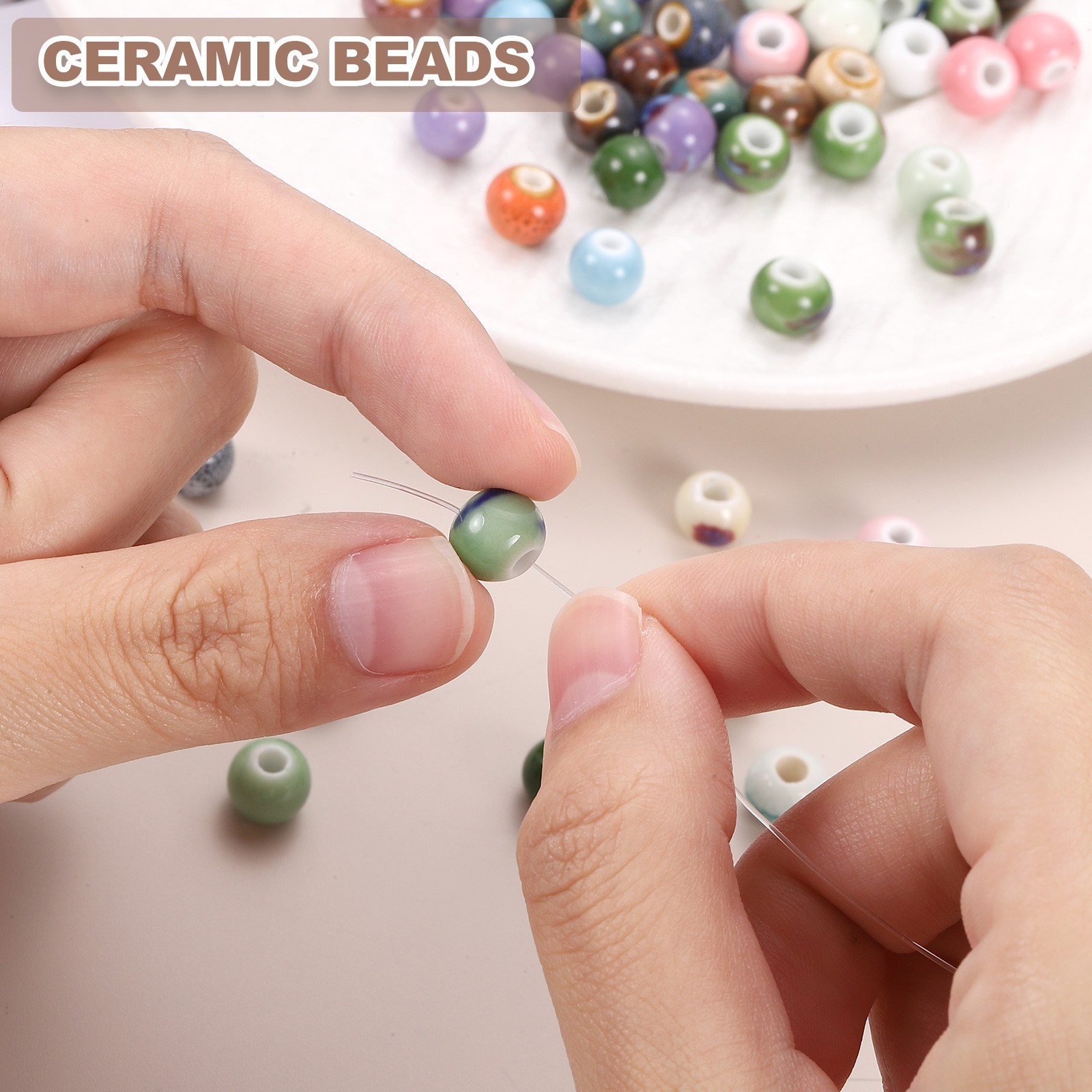 100Pcs 8mm Round Ceramic Porcelain Beads, Emerald Green