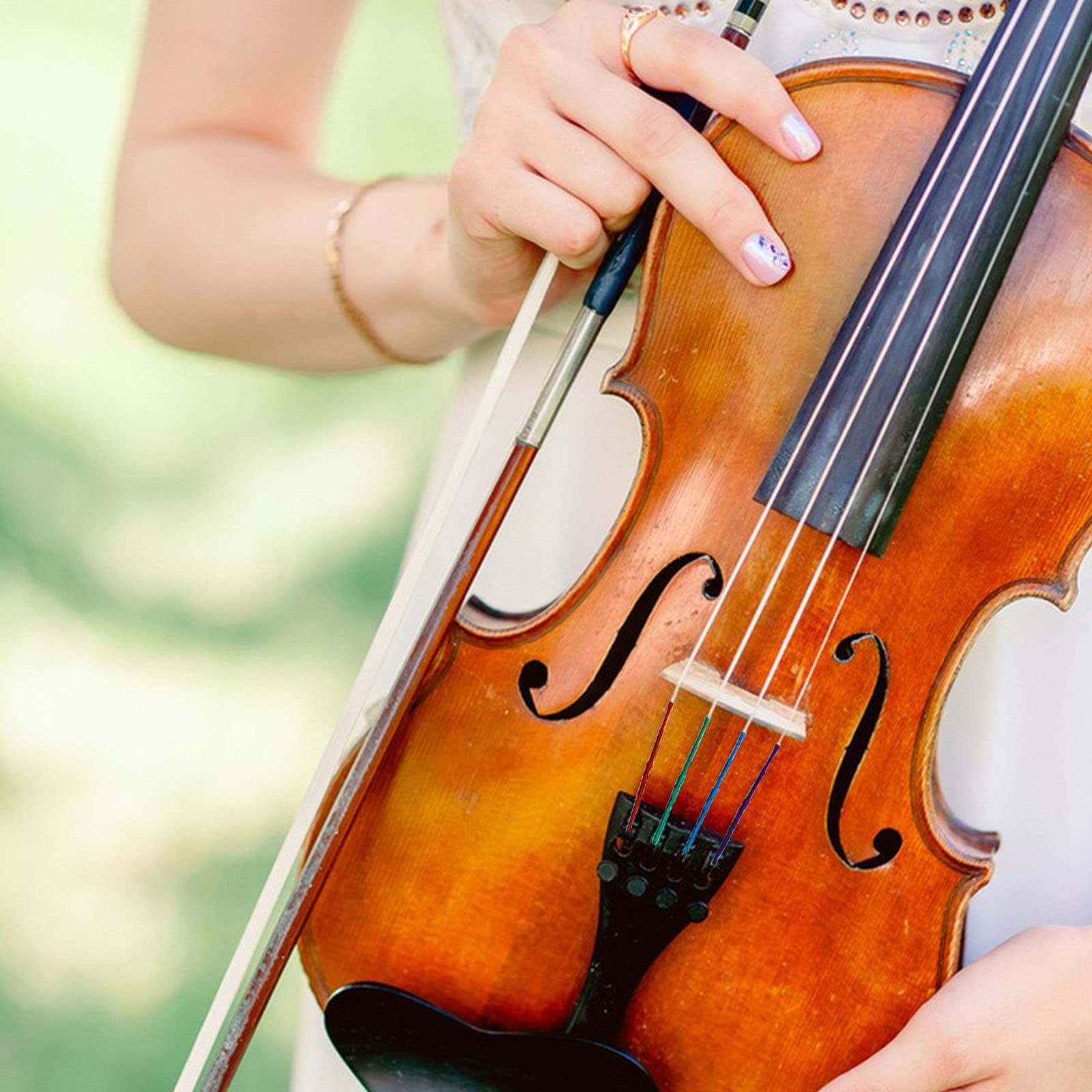 как выглядит 4/4 Full Set Violin Strings 2 Bow Hair Sets Nickel Ball End Professiona... фото