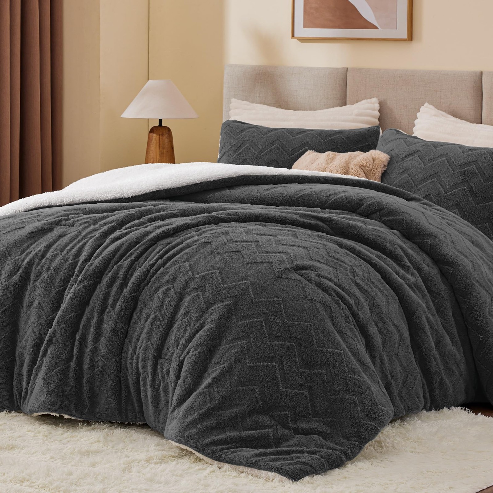 как выглядит Fluffy Queen Comforter Set - Super Soft Sherpa Comforter for Queen Size Bed, ... фото