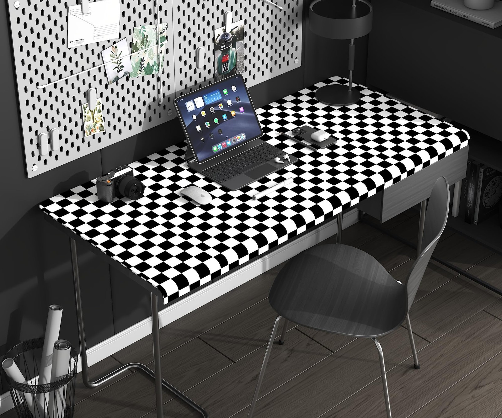 Modern Peel and Stick Wallpaper Black and White Mosaic Checkered Contact Pape...
