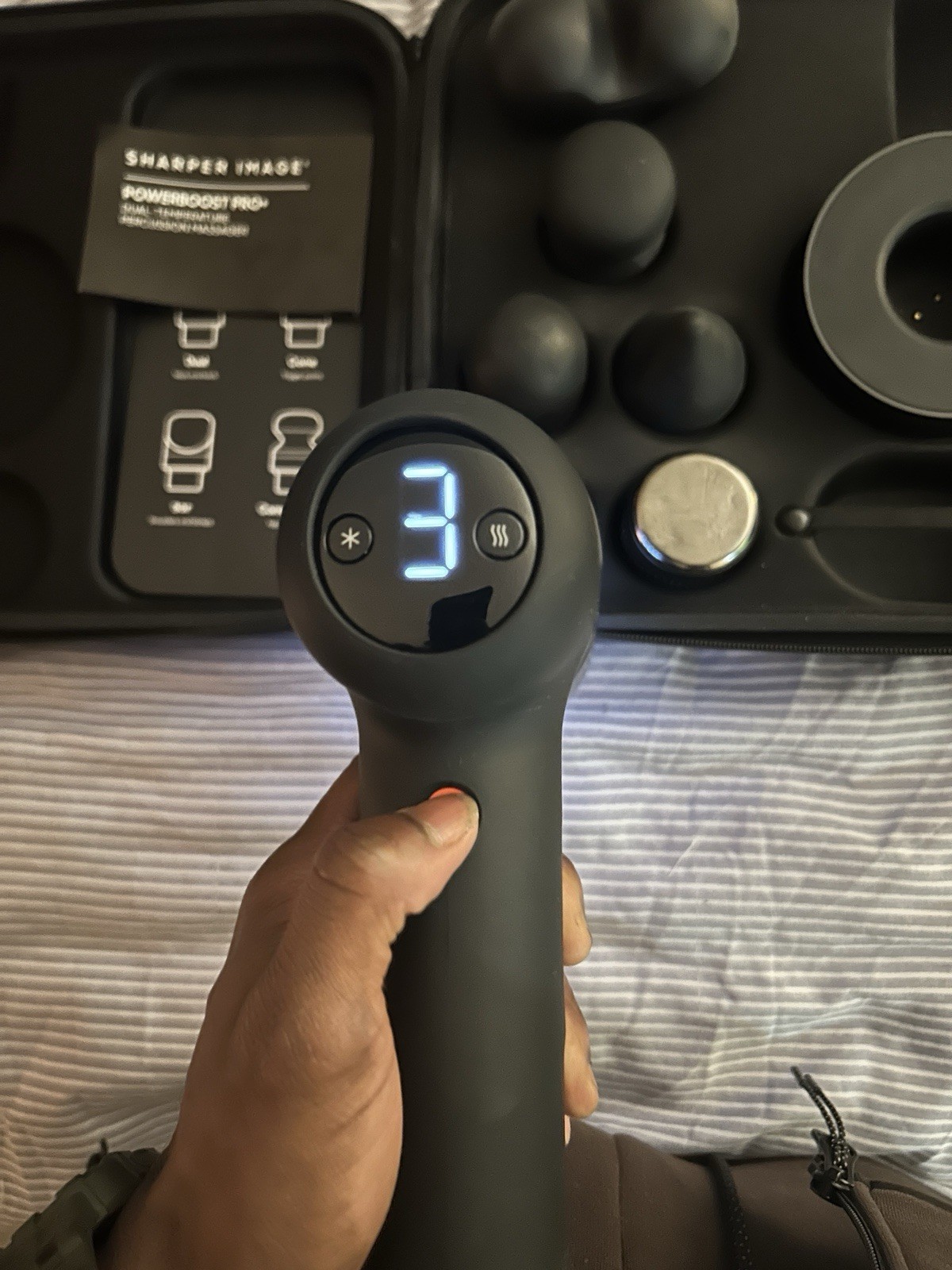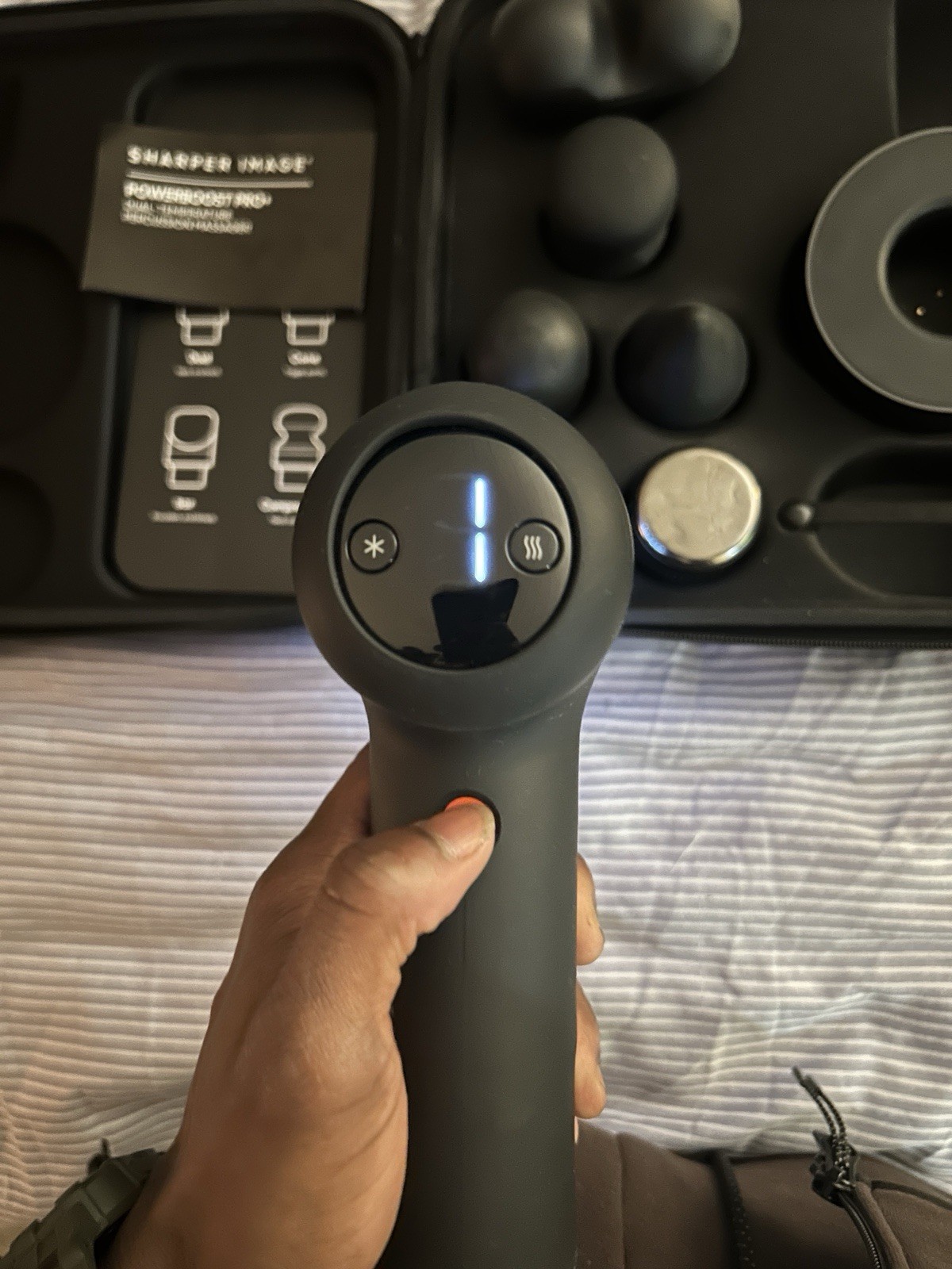 как выглядит Sharper Image Power Percussion Pro Hot Cold Quiet Black Massage Gun фото