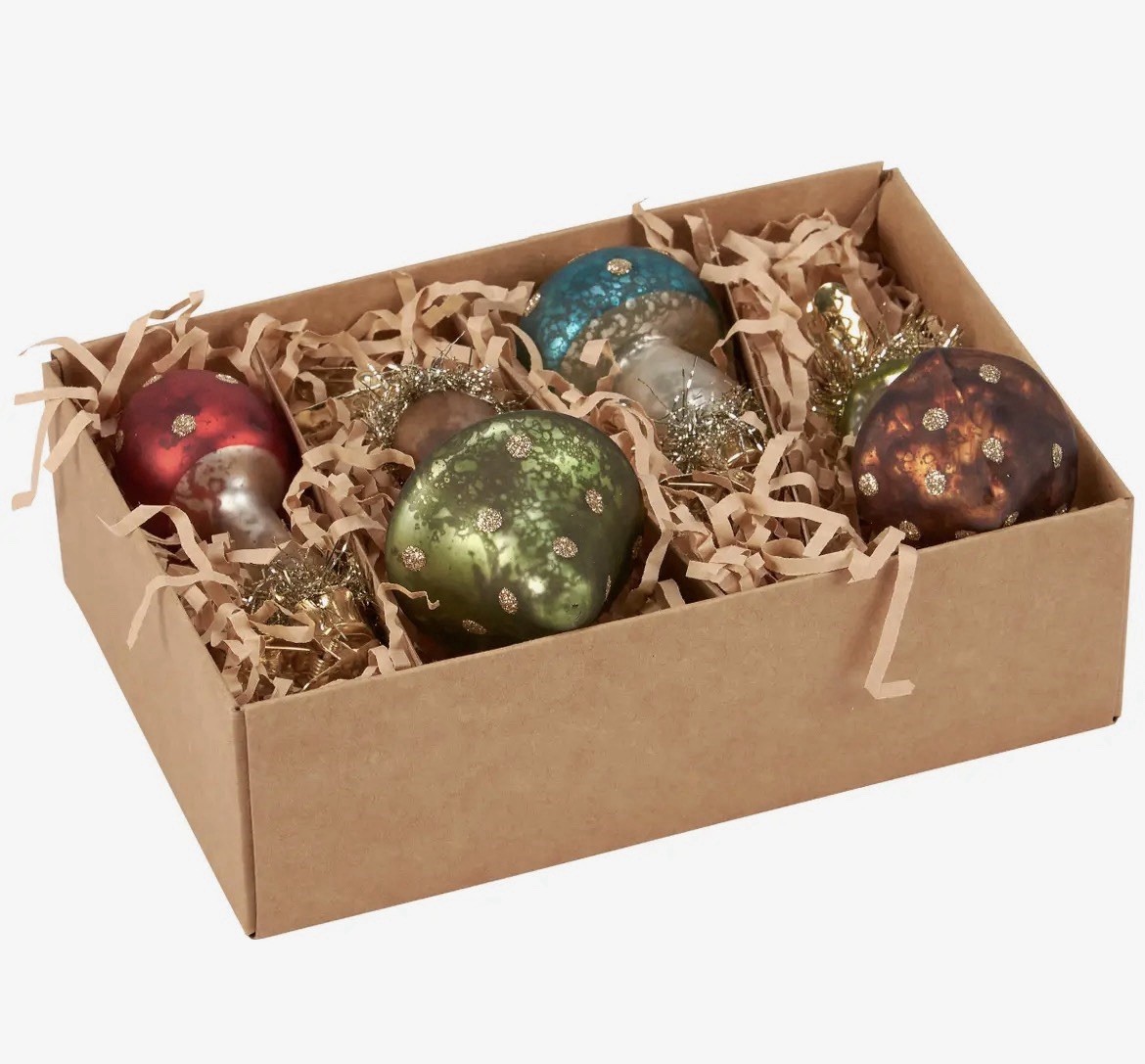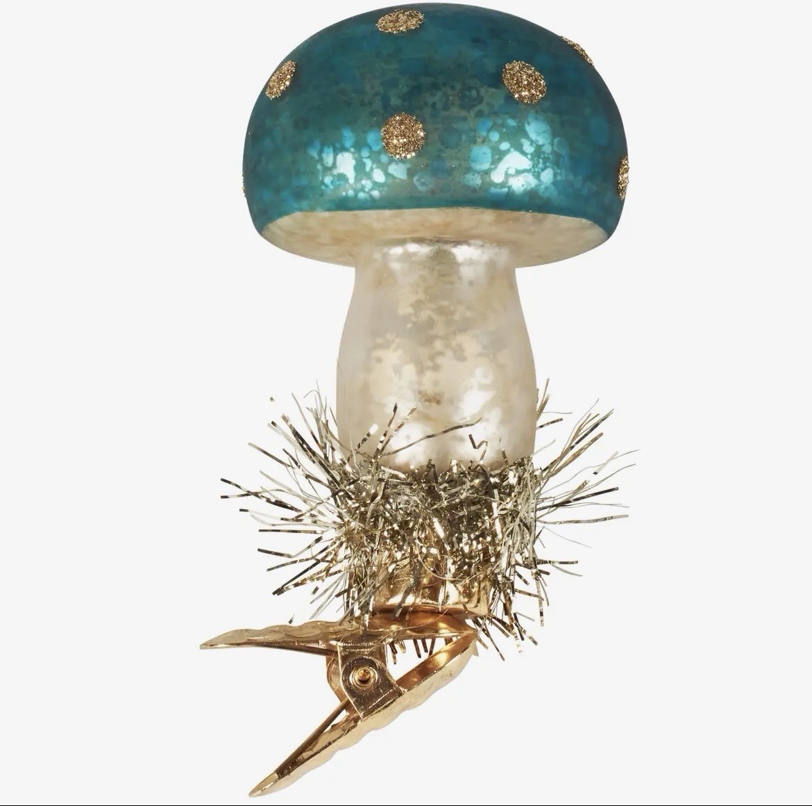 Mercury Glass Mushroom Clip On Ornaments Vintage Style Set Of 4 NEW