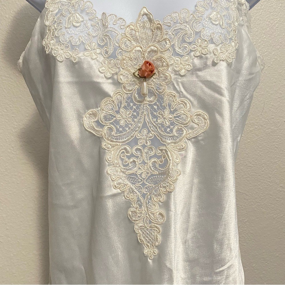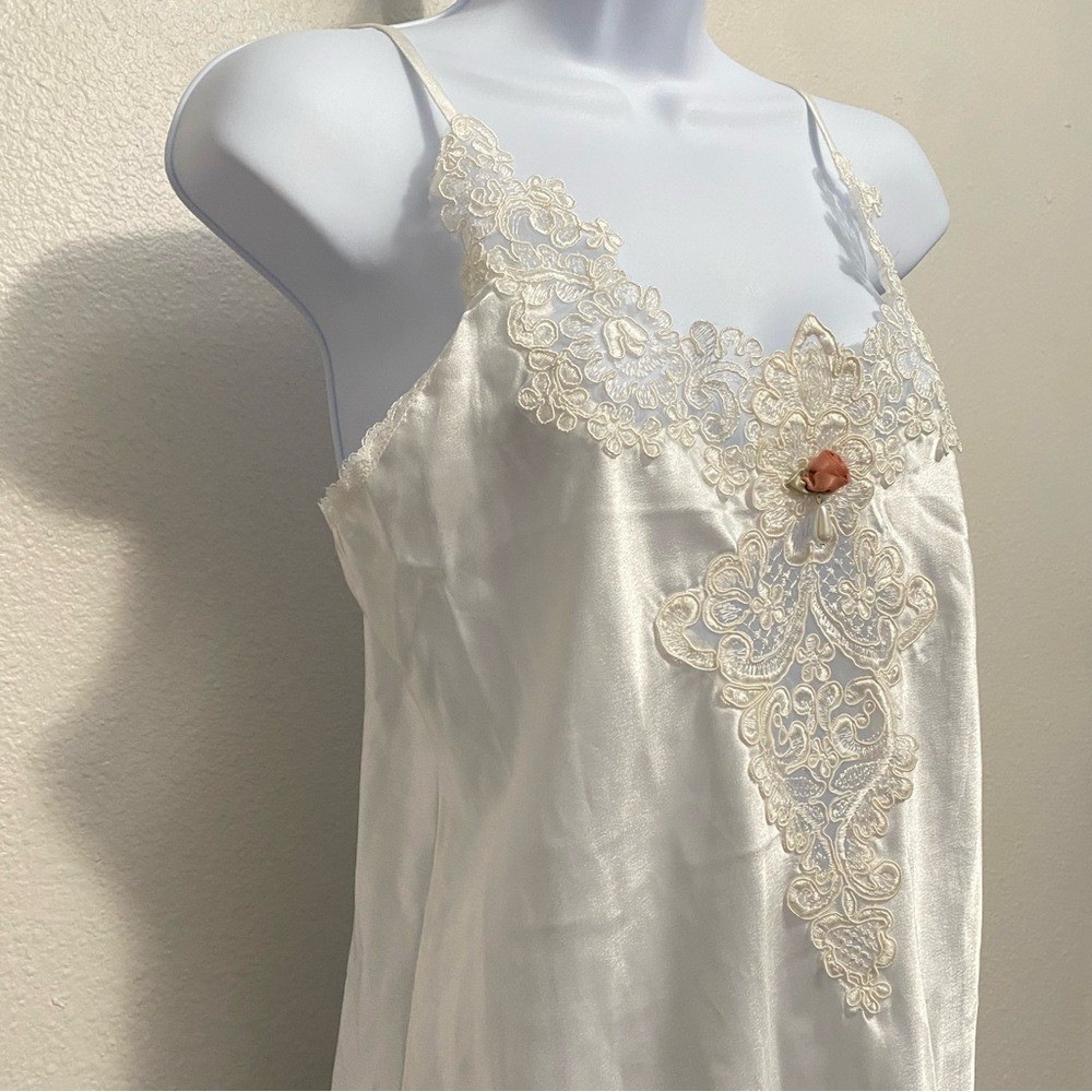 как выглядит Vintage White Satin Lace Trim Babydoll Slip Dress Y2K Romantic Coquette Delicate фото
