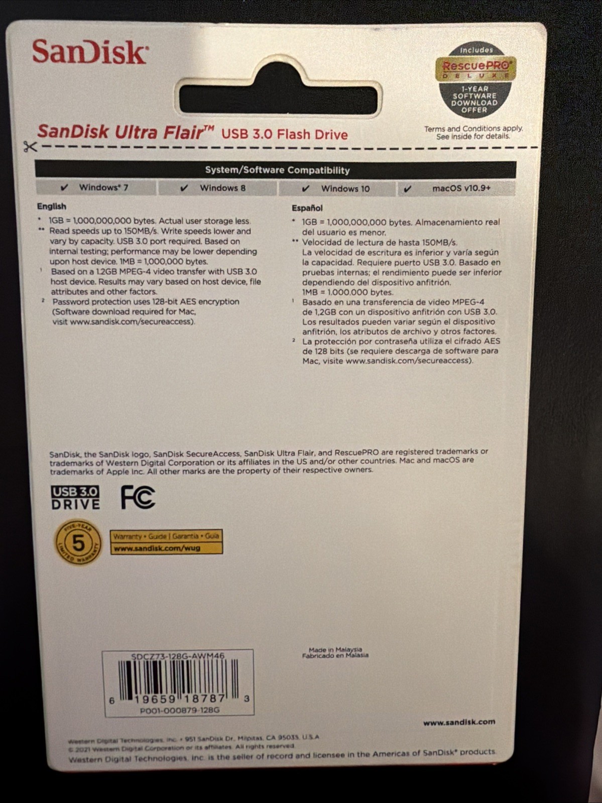 SanDisk Ultra Flair 128GB USB 3.0 Flash Drive Metal High Speed 150MB/s New