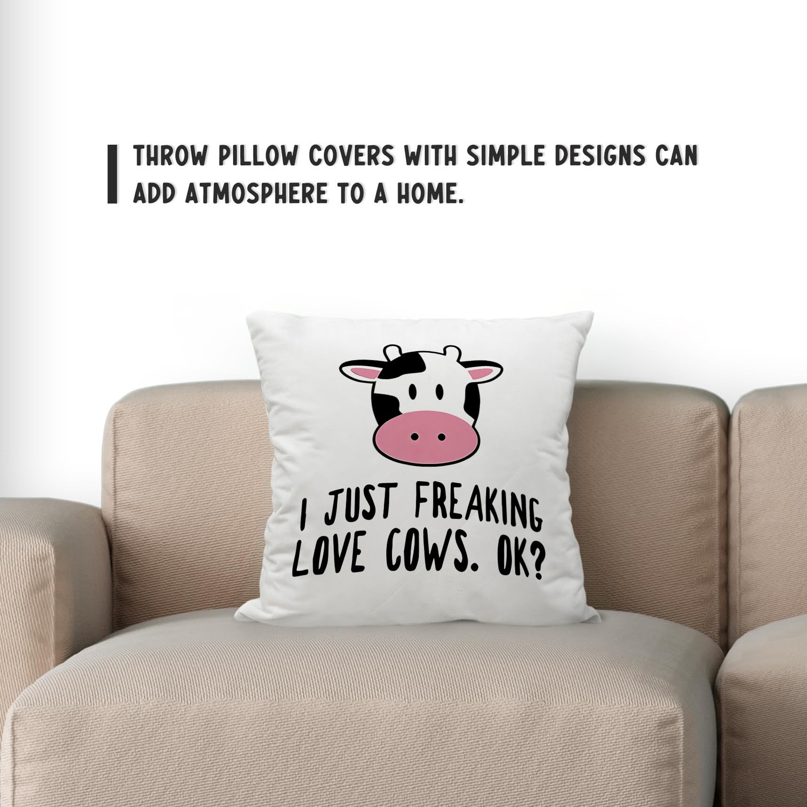 I Just Freaking Love Cows Ok Throw Pillow Cover, Funny Cows Cushion Cover for...
