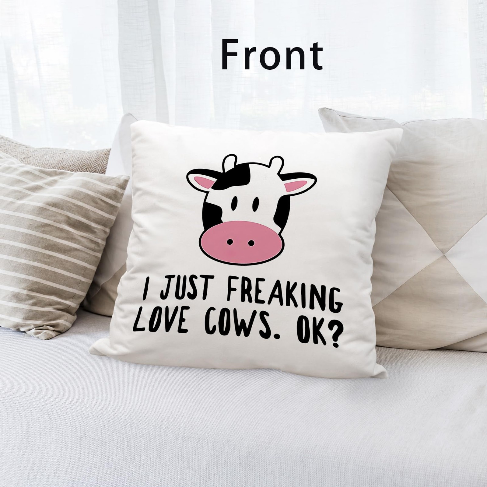 как выглядит I Just Freaking Love Cows Ok Throw Pillow Cover, Funny Cows Cushion Cover for... фото