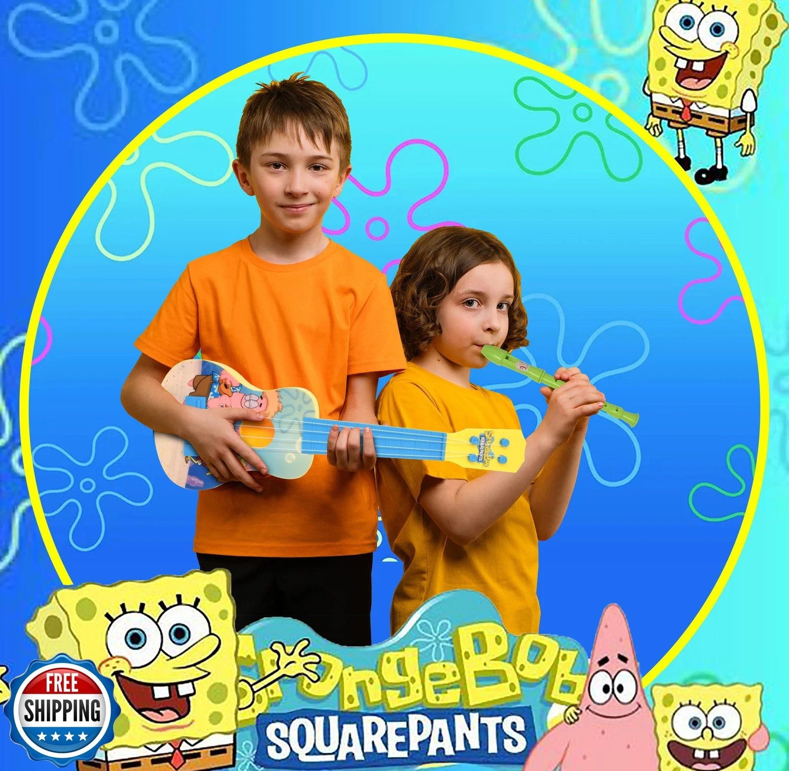 SpongeBob SquarePants 3 Piece Musical Band Toy Set for Kids Ukulele Flute Rec...