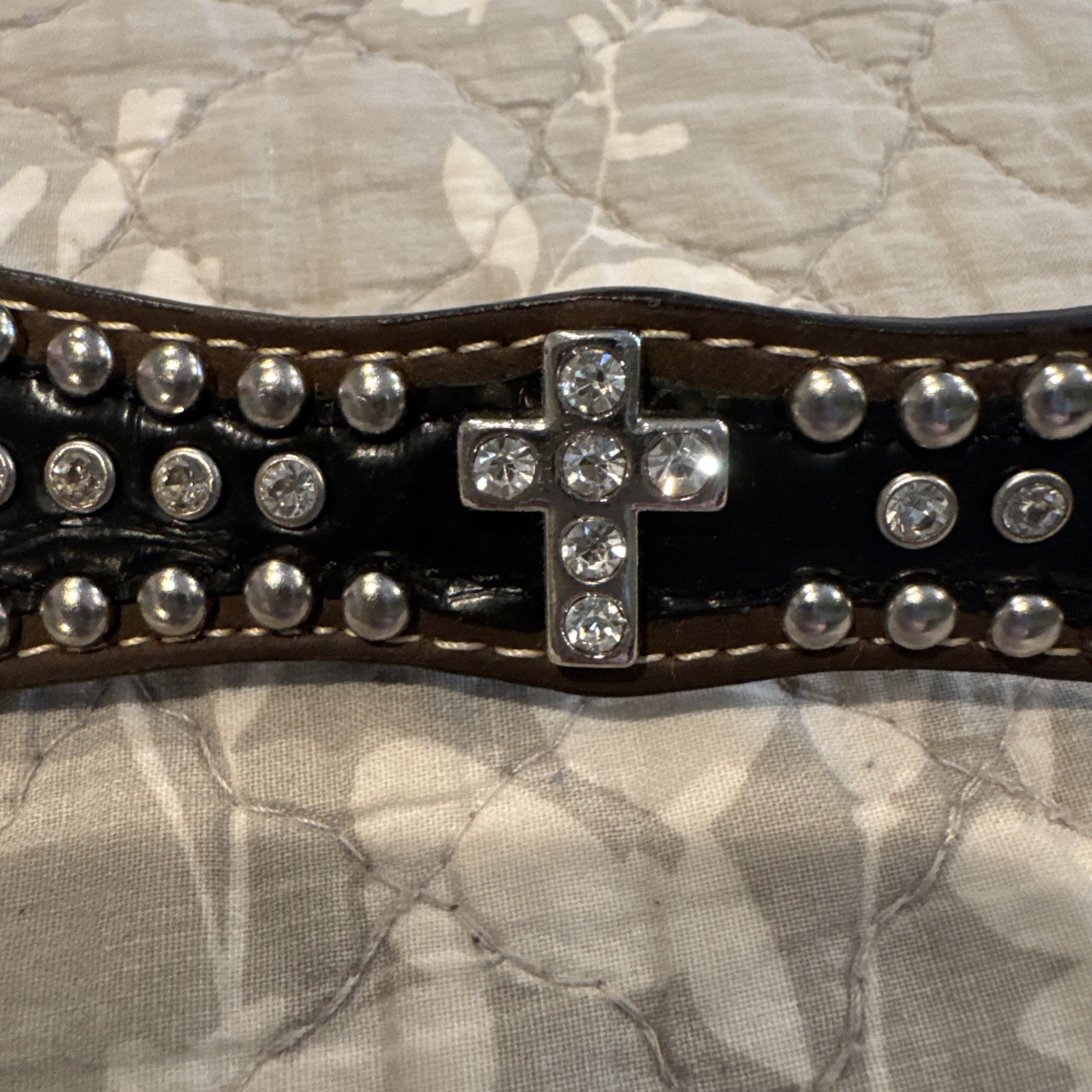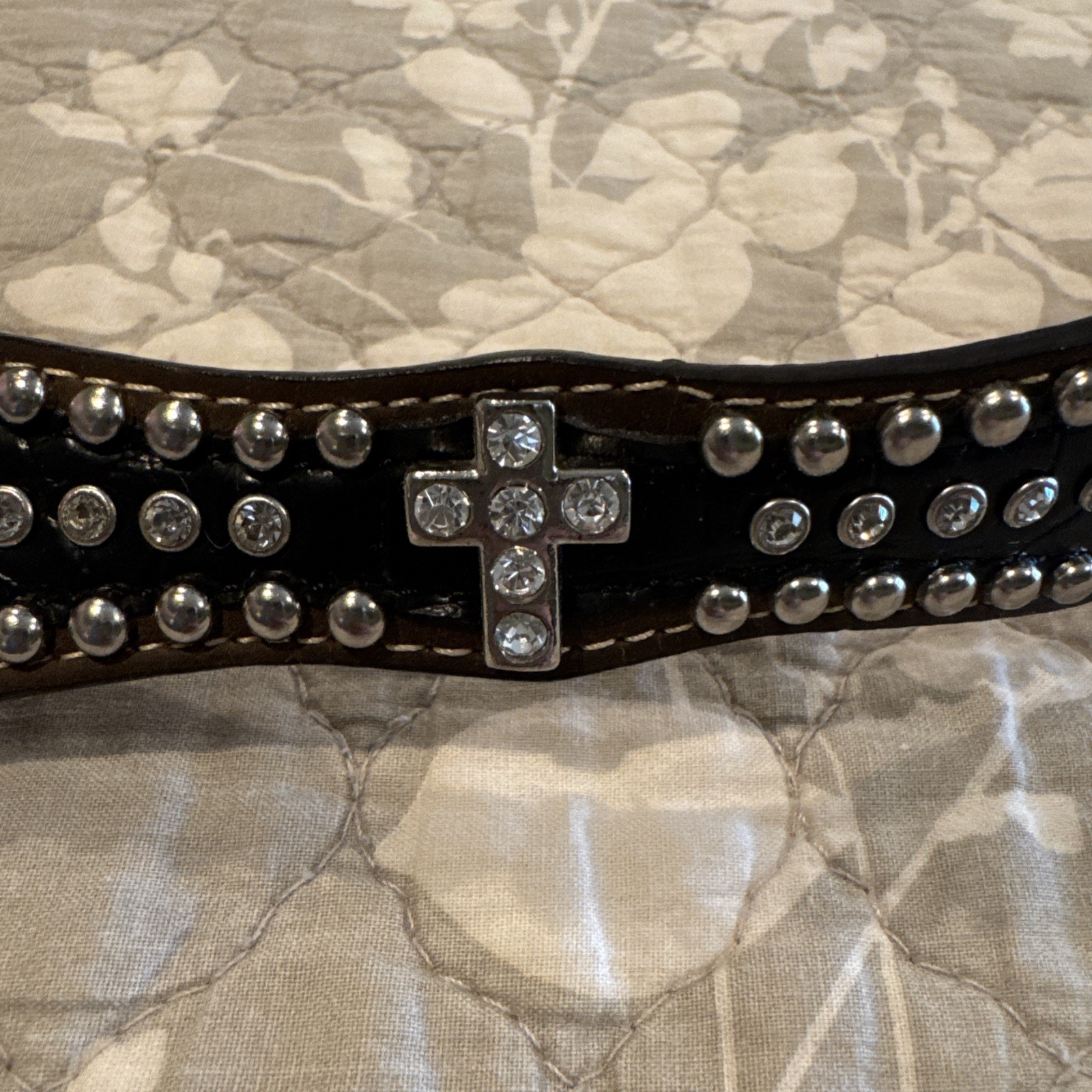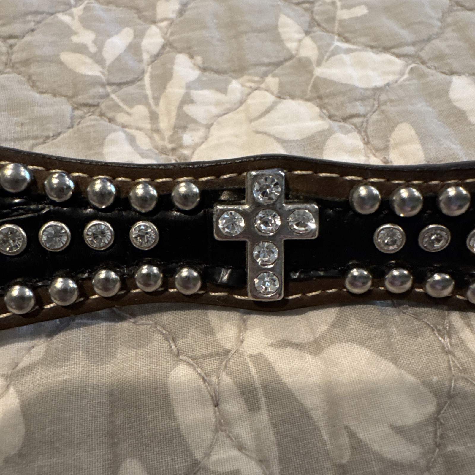 Women s Nocona Black Leather Belt. Rhinestone Cross, With Buckle