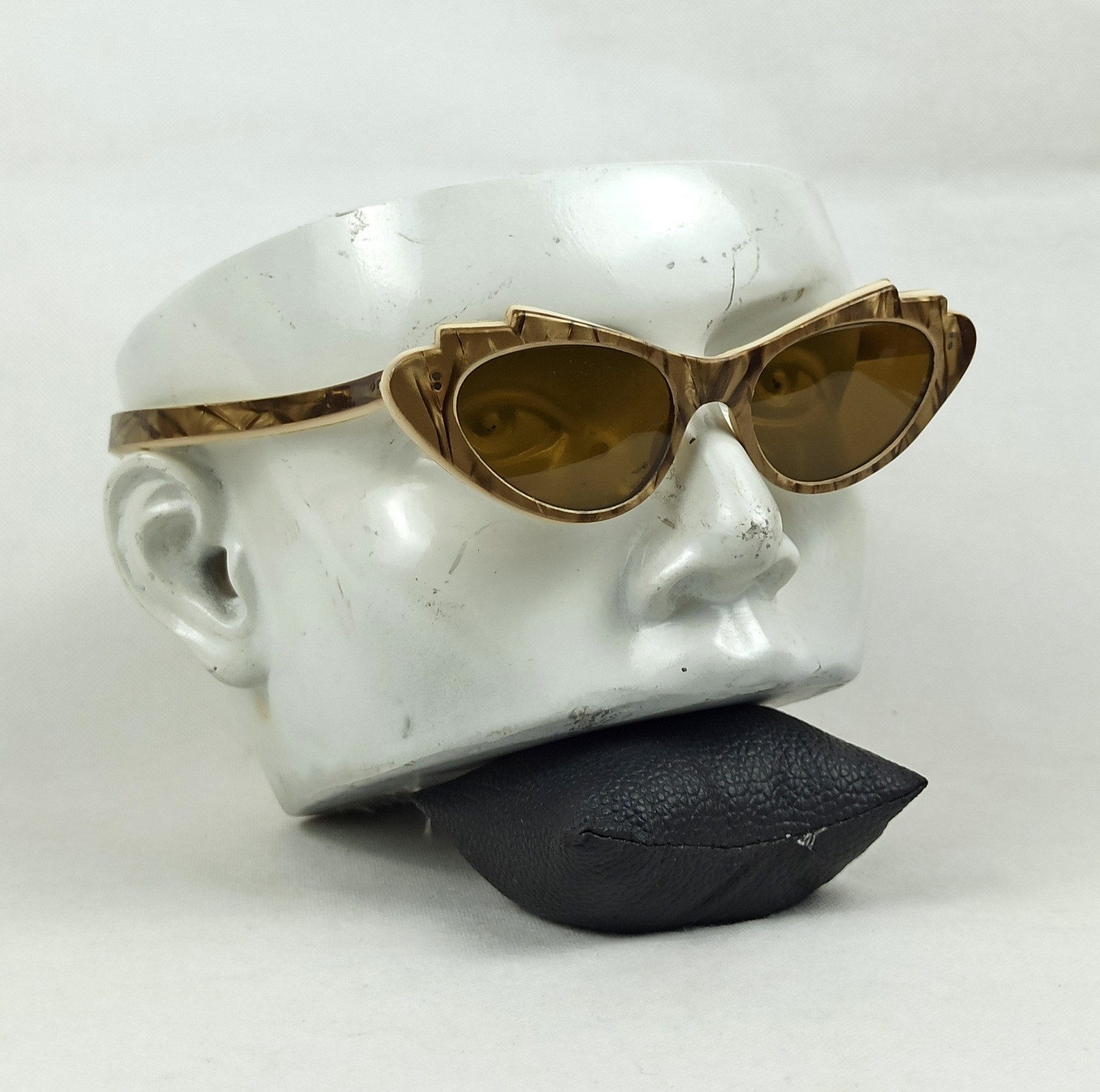 CUTE BROWN SUNGLASSES VINTAGE CAT EYE FRAME PARTY WAVY SHADES 1950S FRANCE