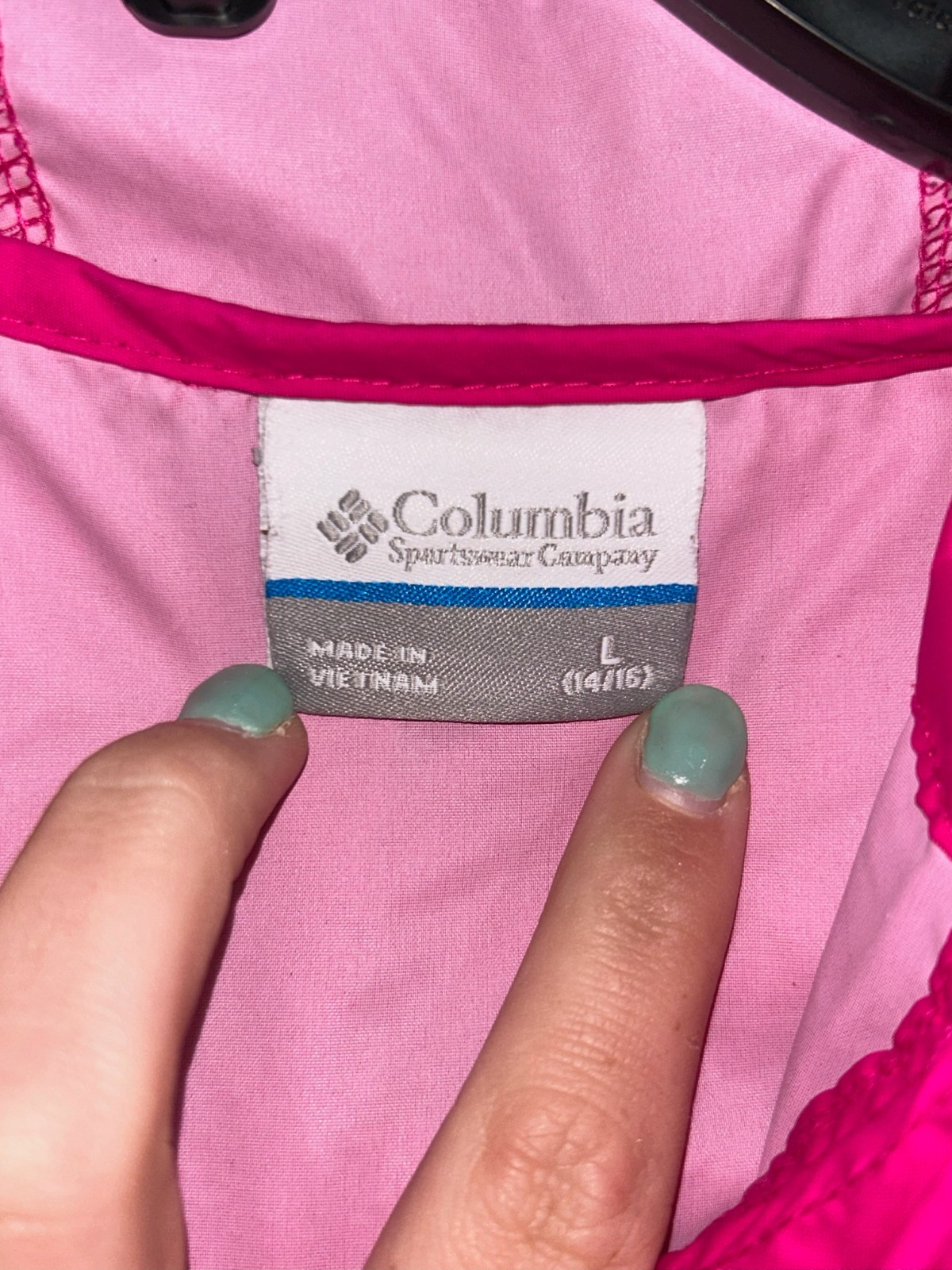 как выглядит Columbia light weight rain jacket girls size large 14-16 full zip with hood фото