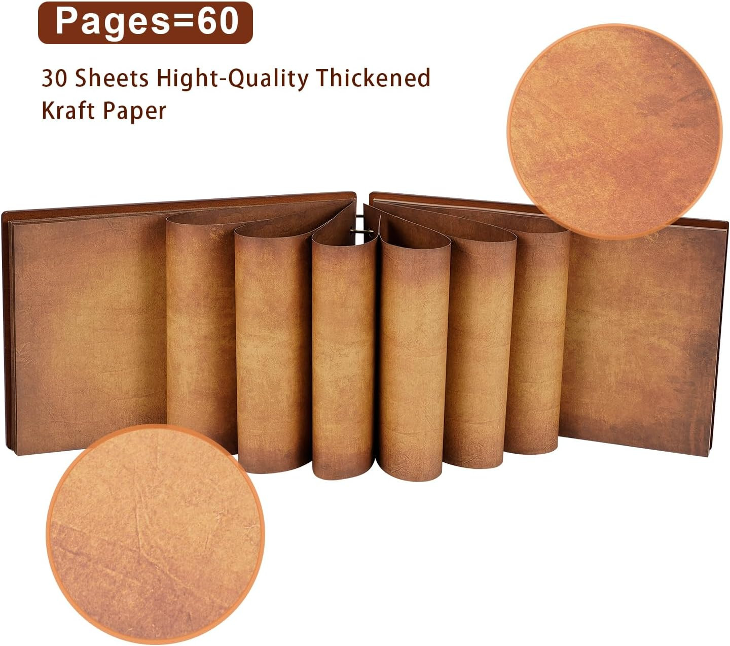 Our Adventure Book 11.9 7.6 Inch Scrapbook Photo Album, Retro 3D Wooden Travel