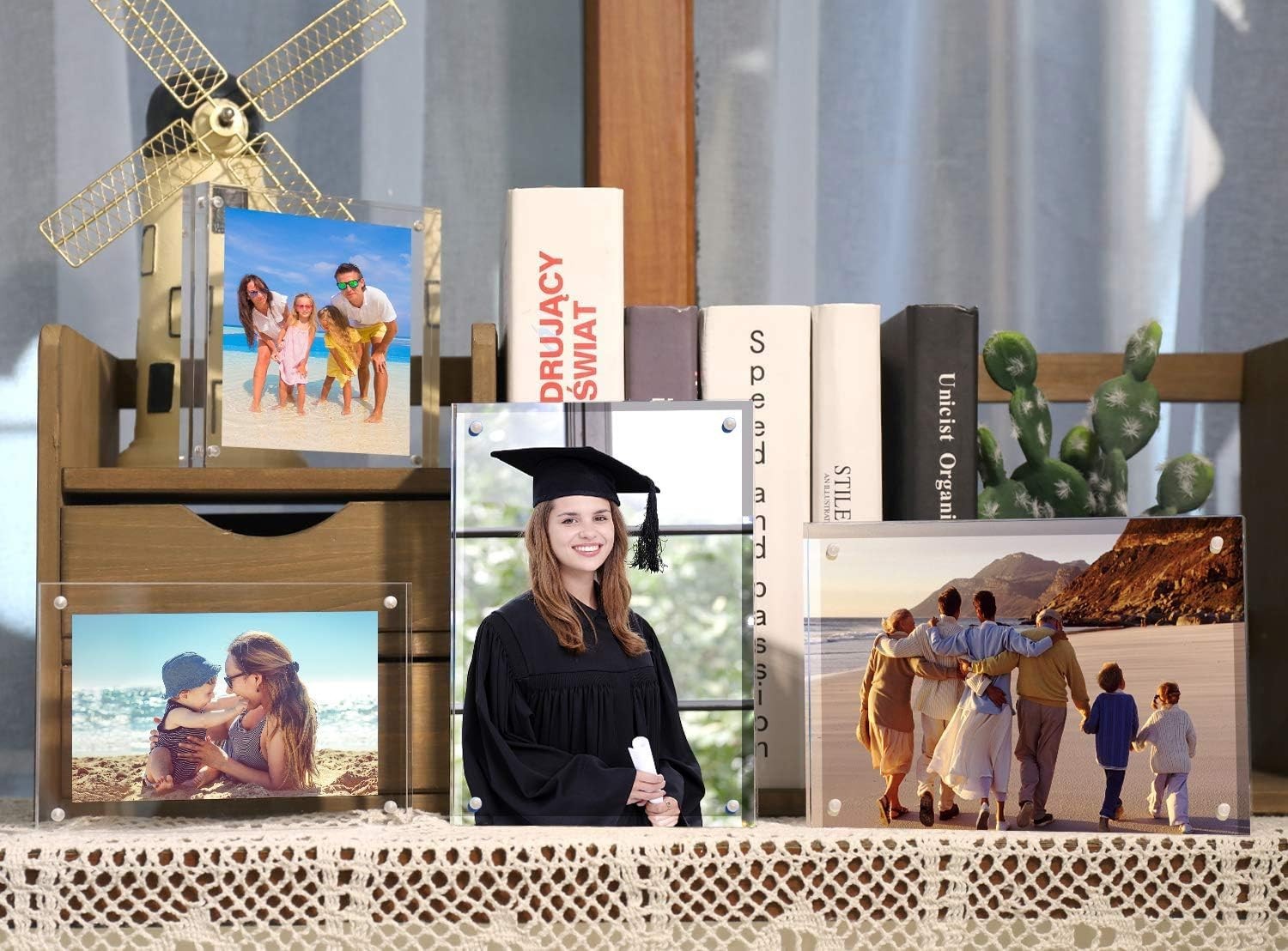 Acrylic Frames, 2 Pack 5x7, 24mm Thicker Frameless Clear Frame, Double Sided ...