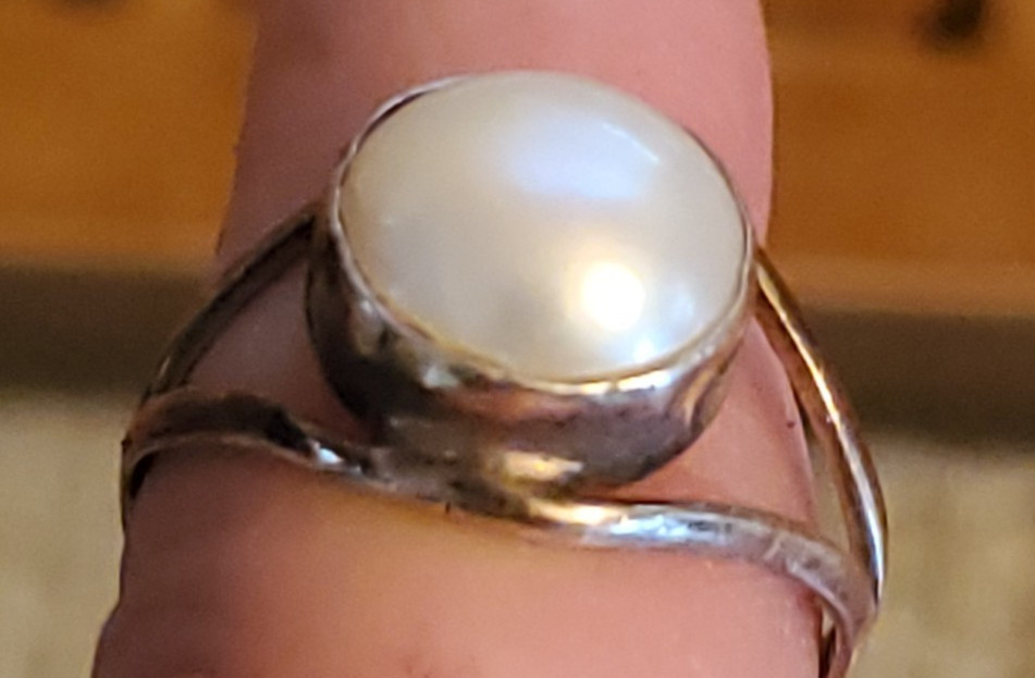 как выглядит Vintage Sterling Silver 925 Womens Ring With Large Pearl Size 6-1/2 фото