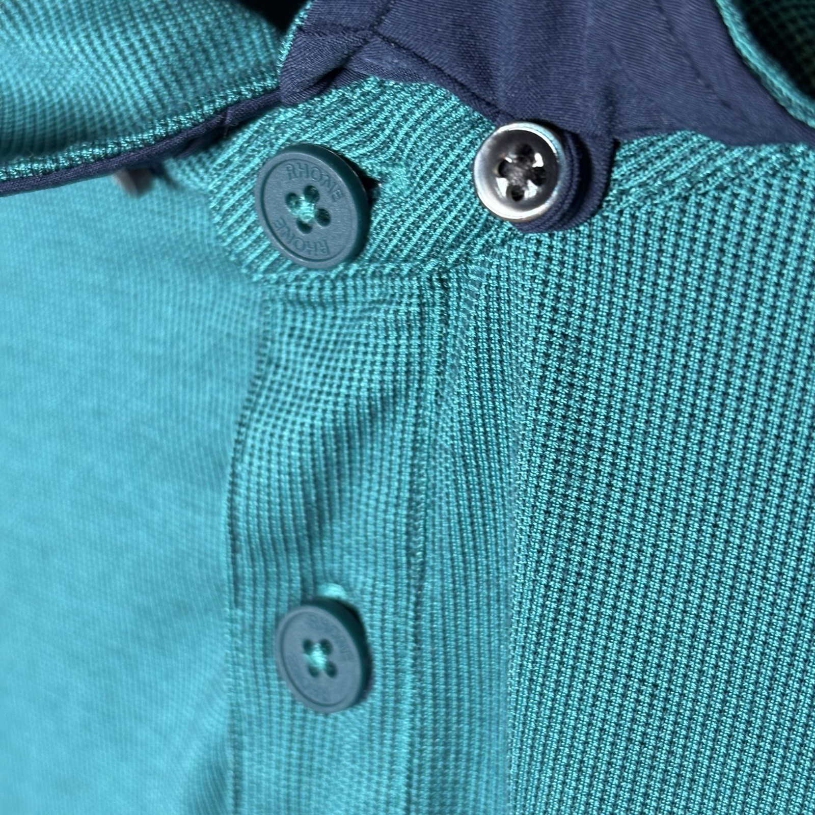 как выглядит Rhone Delta Pique Polo Shirt Mens L Teal Golf Performance Stretch Golf Work фото