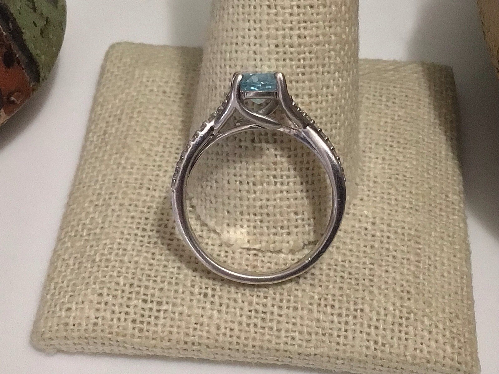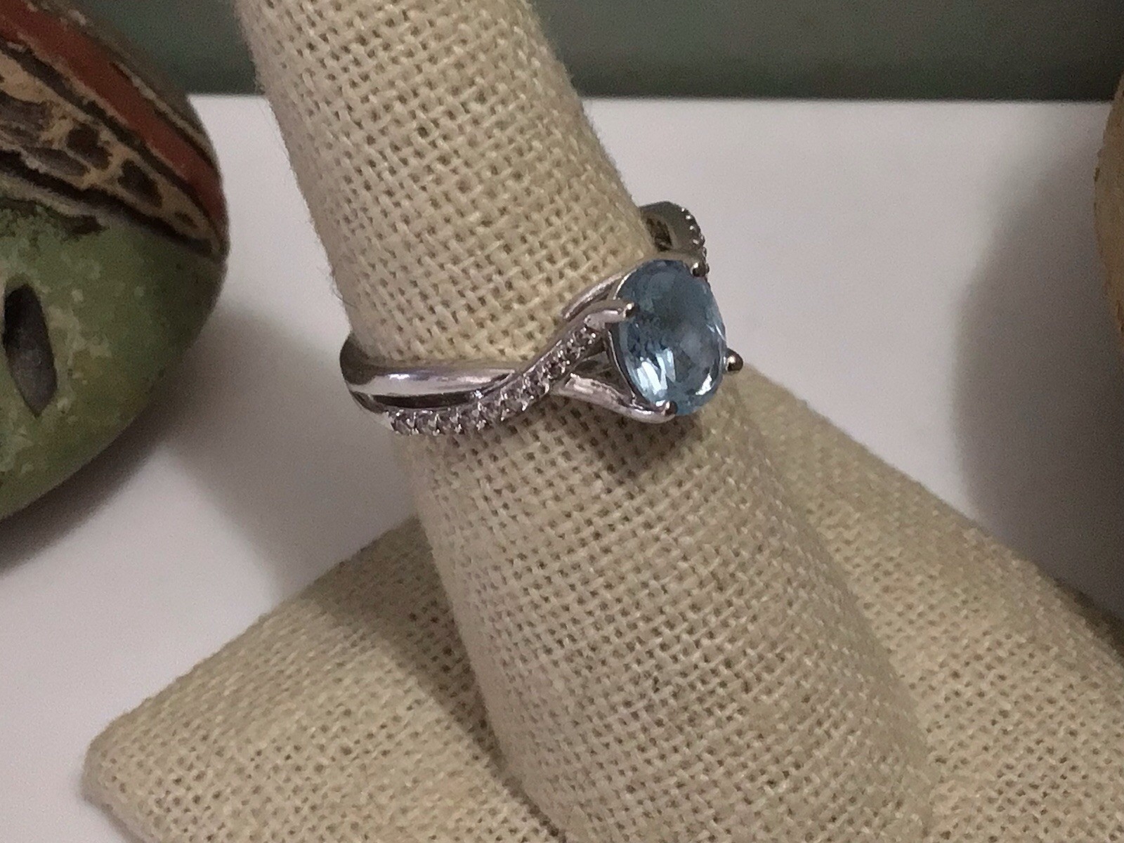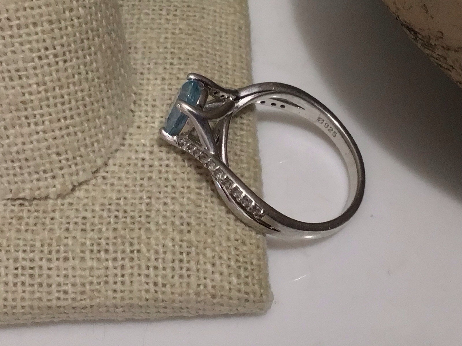 как выглядит VTG Branded 925 Sterling Silver Oval Blue Topaz Ring w CZ Accents Sz 7 EUC фото