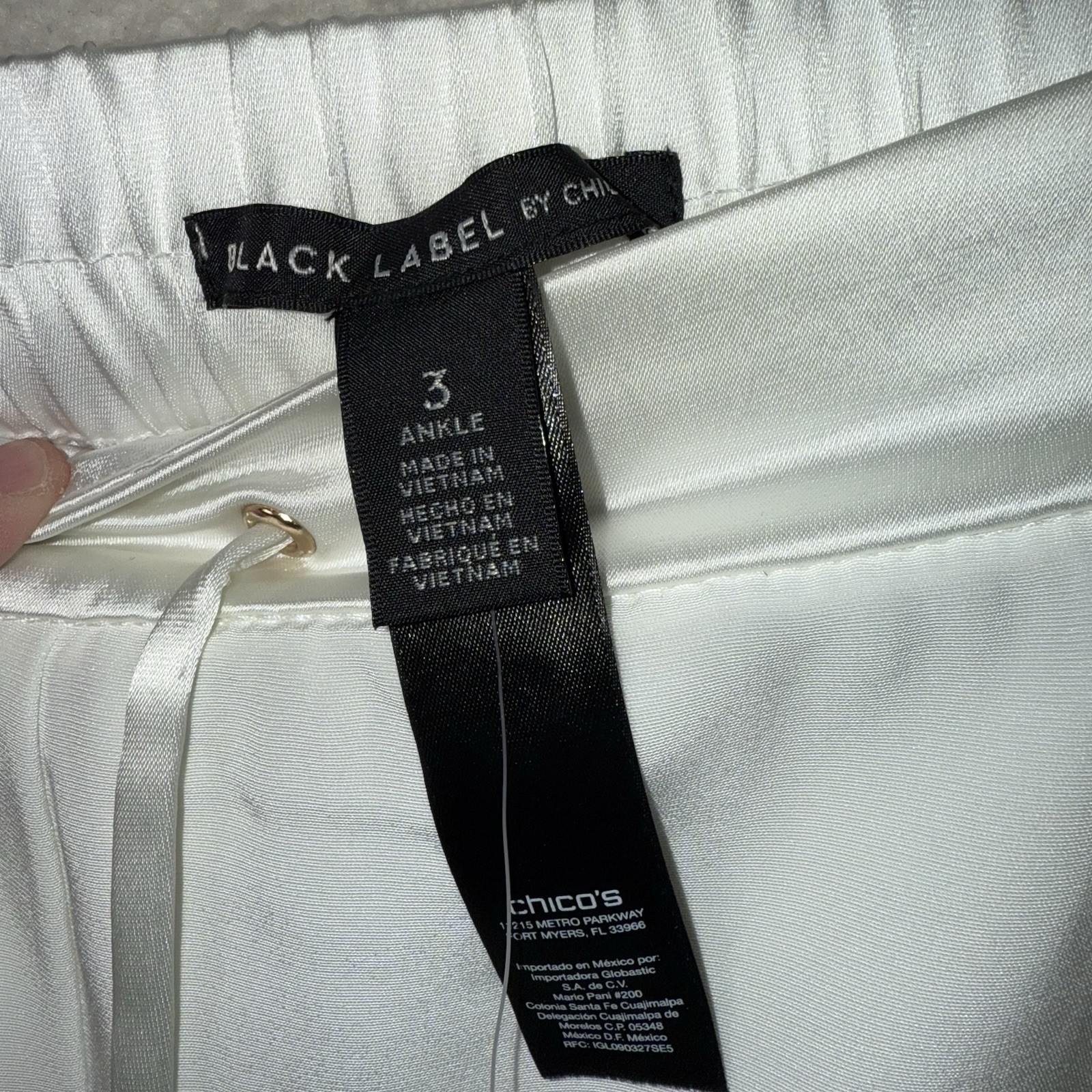 как выглядит Chicos Black Label Matte Shine Ankle Pants Winter White SIze 3 Large NWT фото