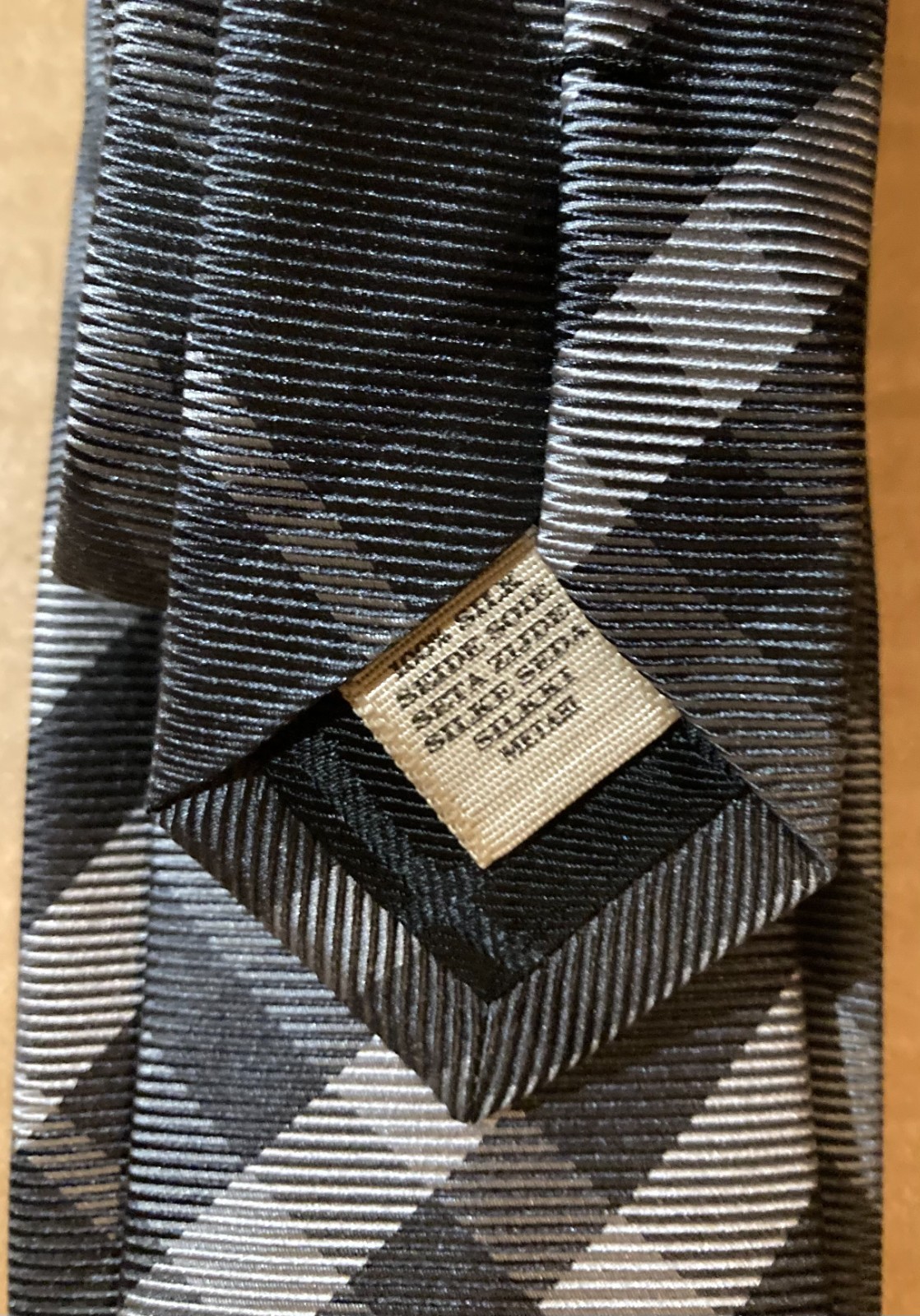 как выглядит Burberry 100 Silk Nova Check Tie, charcoal black/grey, 3.25" NEW фото
