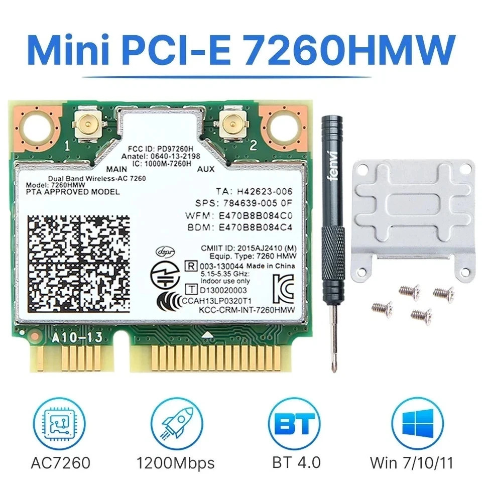 Intel 7260HMW Dual-Band Wireless-AC Card, 802.11ac WiFi Bluetooth 4.0 for PC