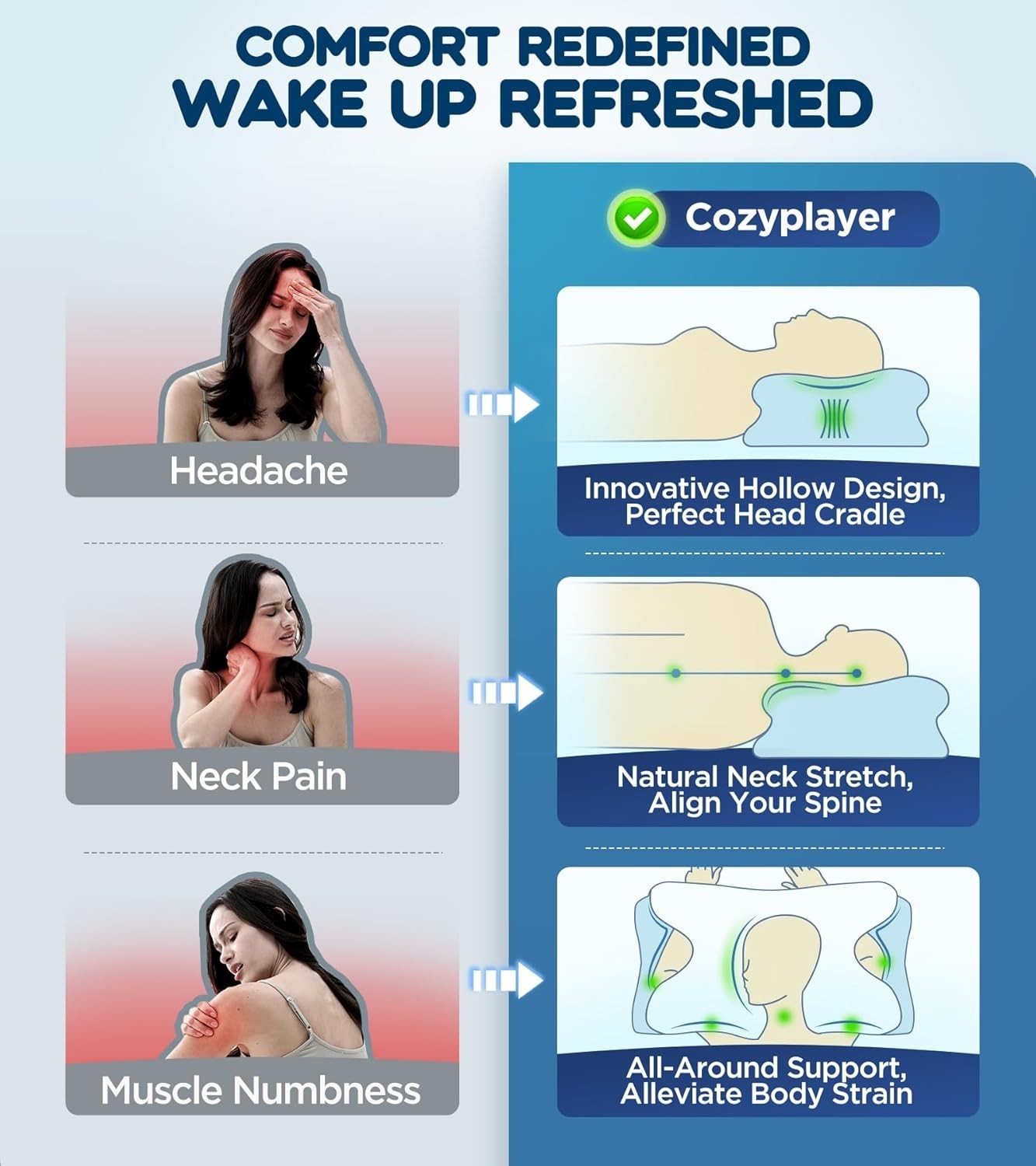 Effective Pain Relief Cervical Neck Pillow for Sleeping, Ergonomic Cooling Si...